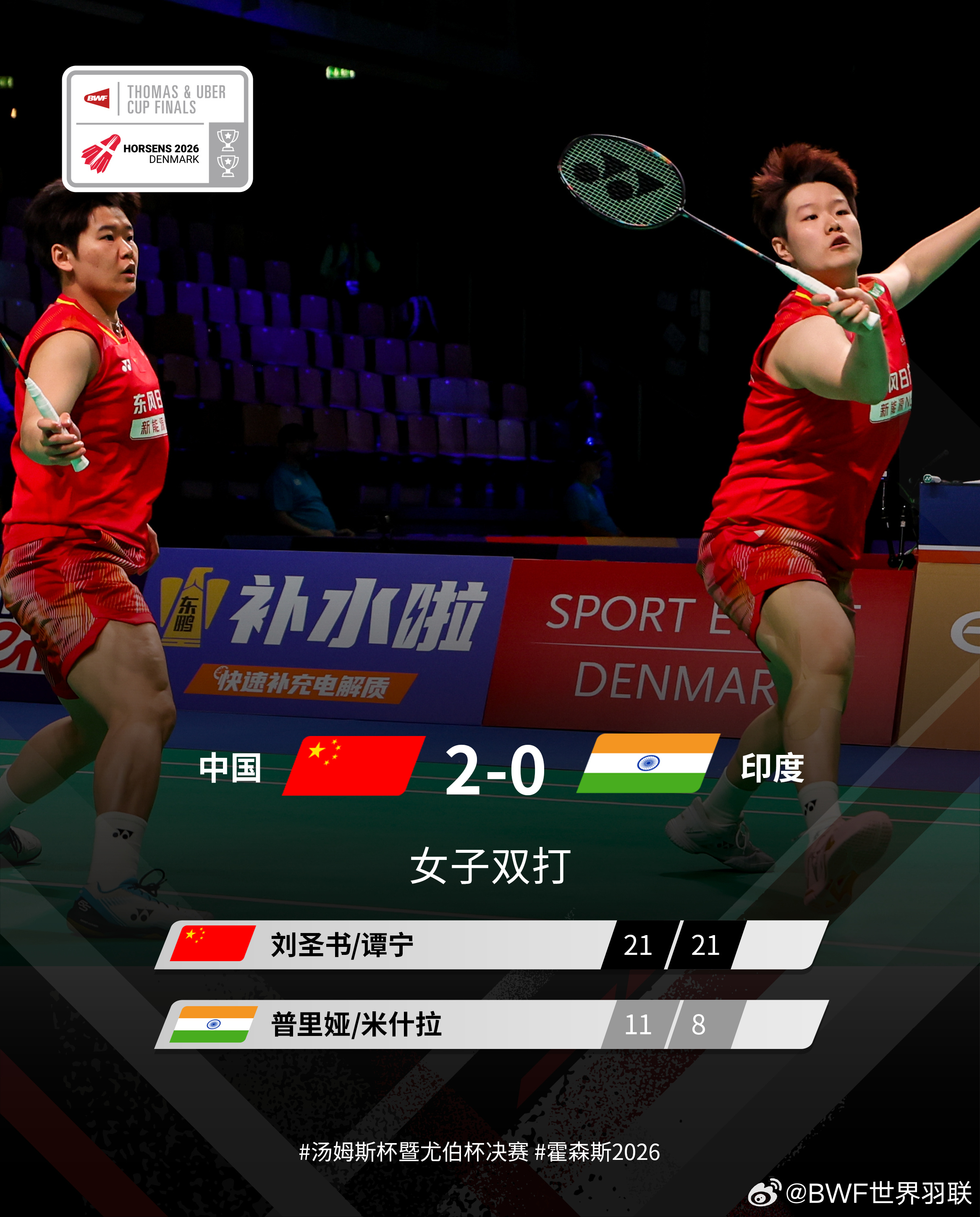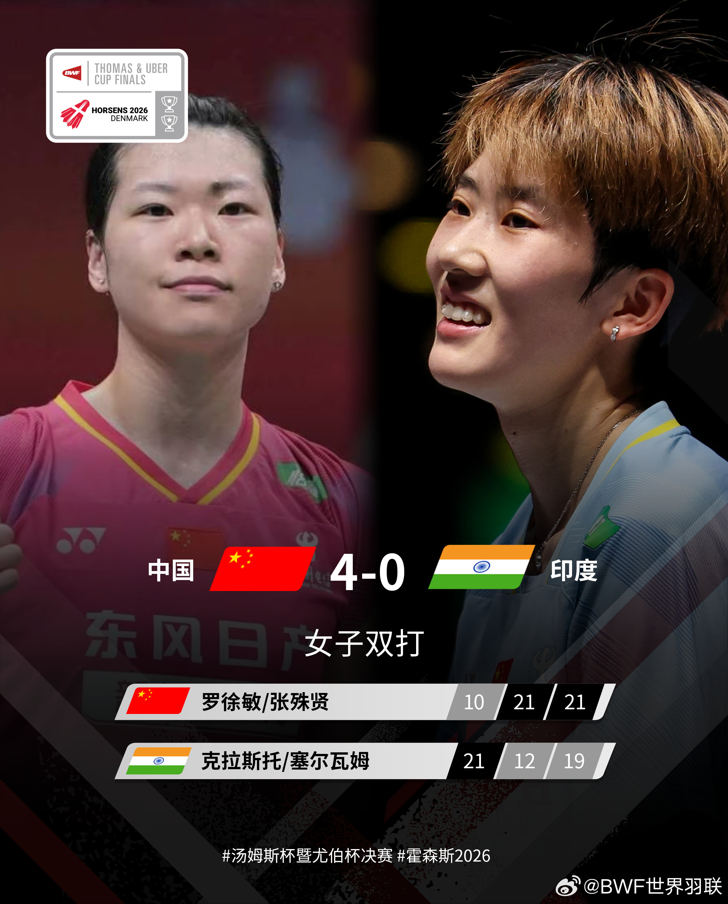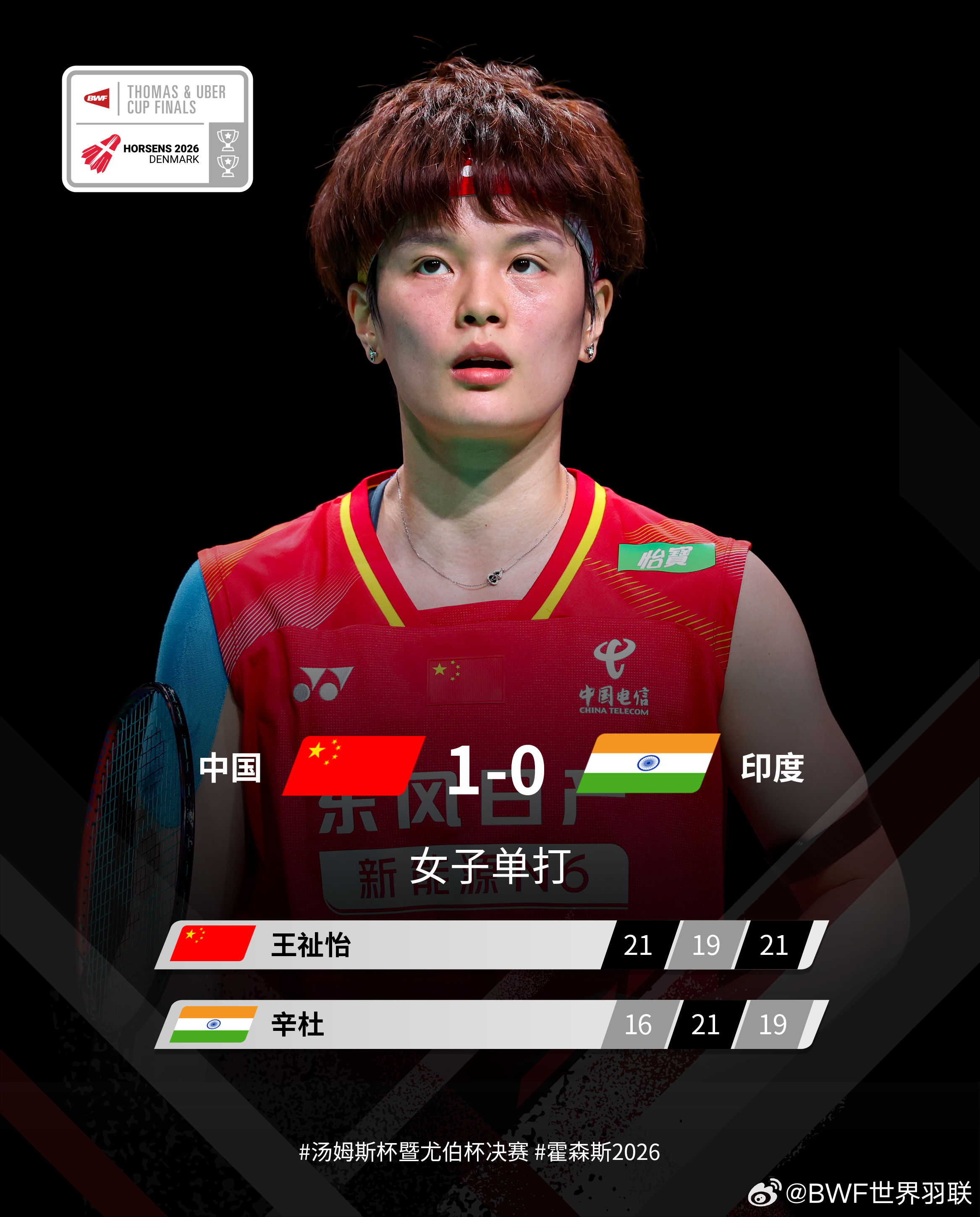 2026尤伯杯小组赛,中国队提前锁定胜局
