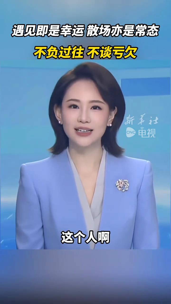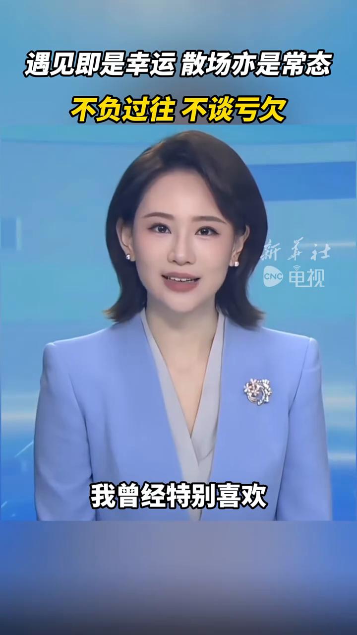遇见即是幸运,散场亦是常态,不负过往,不谈亏欠。 新华社电视主持人管晴。 如果有一天你们不再联系了,希望你在某个瞬间听见他的名字时还能笑着说一句:这个人我曾经特别喜欢。让你心动的人未必能给你心安,让你心安的人不一定有当初的悸动,也许这就是缘分最真实的模样。 想念不一定要见面,喜欢也不一定要在一起,每一种距离都有它存在的意义。走散也许是人间常态,每个人都不是例外,只是偶尔会想如果当初能成为他的偏爱和例外该有多好。但你要相信有些人来过就好,不负相遇,不谈亏欠。