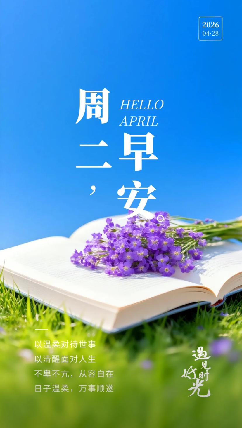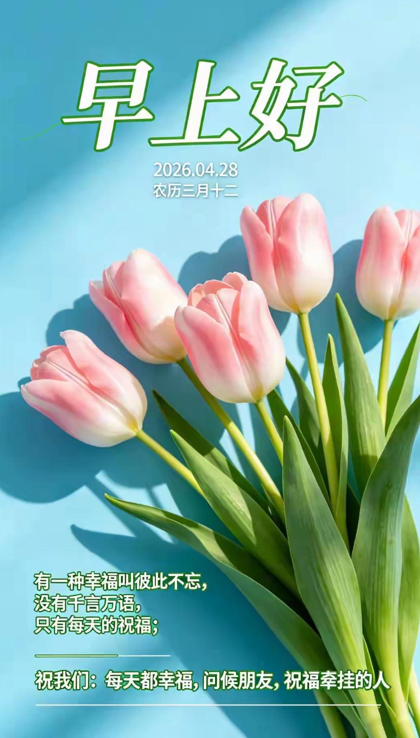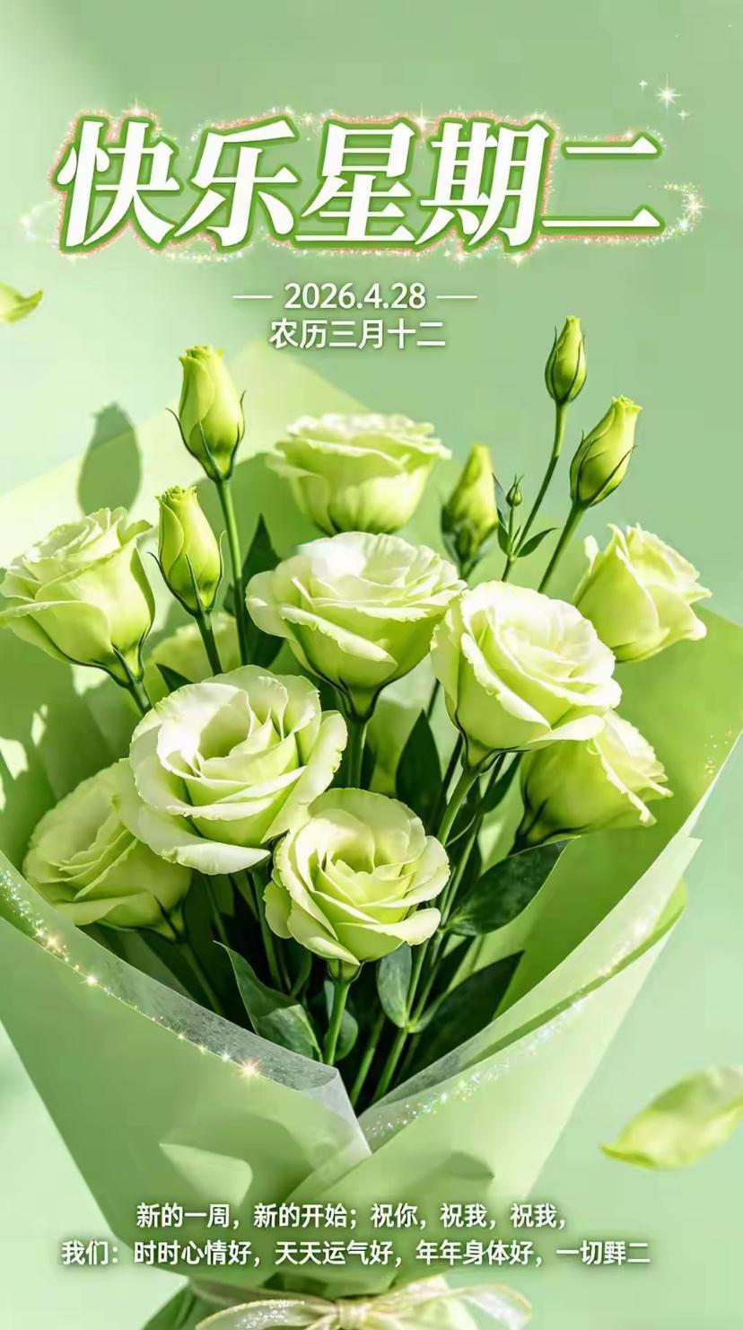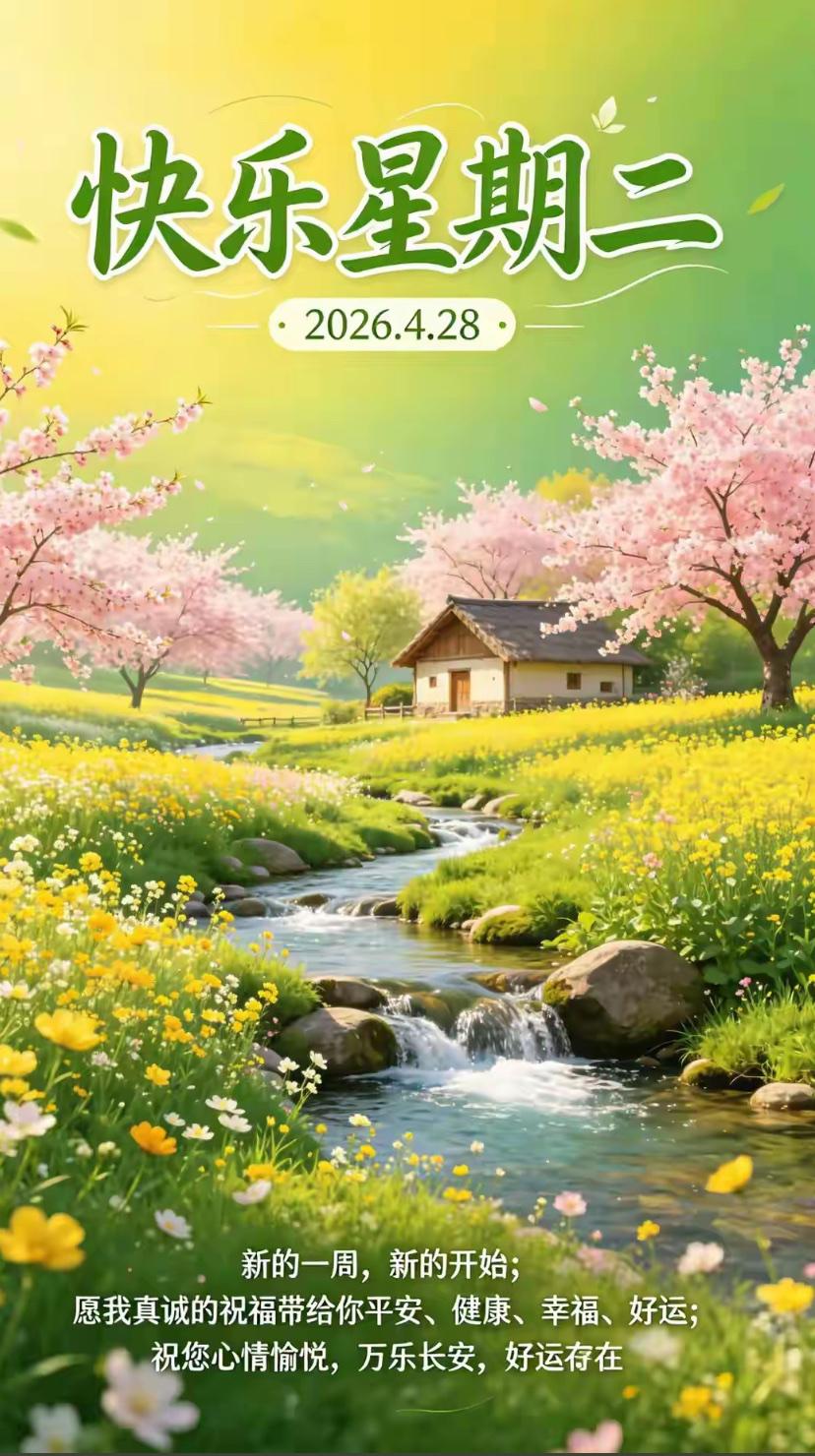 春日寄安,四季常安多喜乐,日日顺意享安康。 2026./04.28. [微风][玫瑰]早安周二[玫瑰][微风] 🌿🌻四季更迭,时光缓缓,清晨的每一声问候,都饱含着真挚的牵挂与关怀。愿你平安无恙,不被过往所困,不为未来担忧,用心把握每一个当下,不负今朝。平凡的日子里,实则藏着最实在的温暖,心若平静,处处皆是良辰美景。 🌿🌷人生的满足,不在于富足,而在于内心的知足;世事繁杂,无需强求,只需坚守本心。即便遭遇风雨,也能从容应对,愿你一路顺遂,时时展露笑颜。总有欢喜值得期待,有美好值得盼望,把日子过得温馨安稳,让祝福与温暖,长伴你岁岁年年。周二愉快!🌿🌷