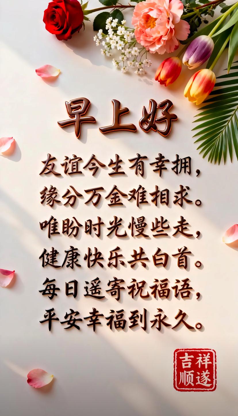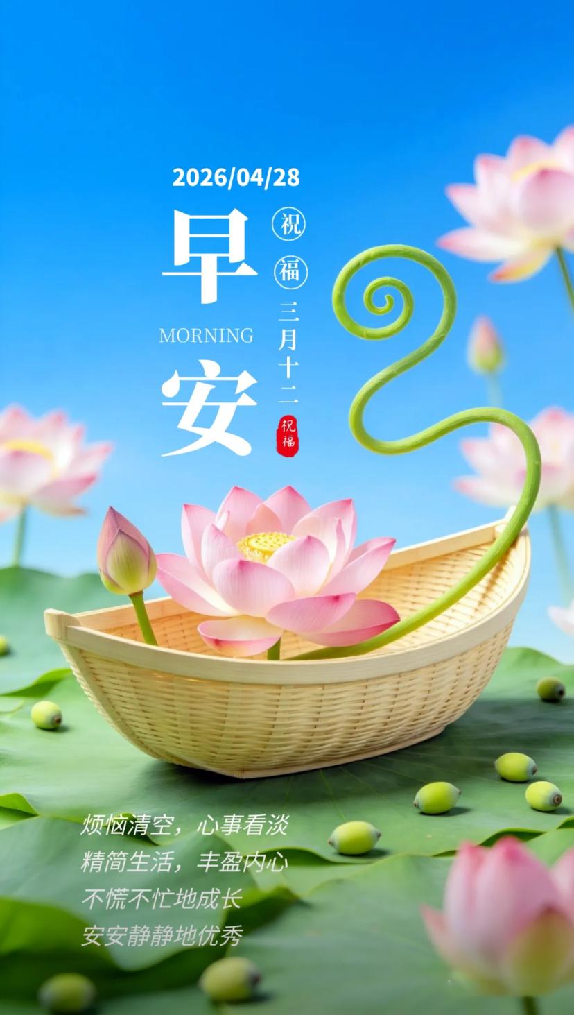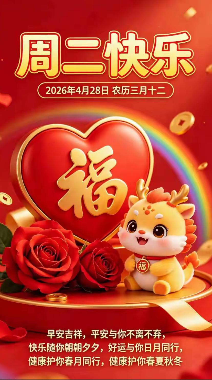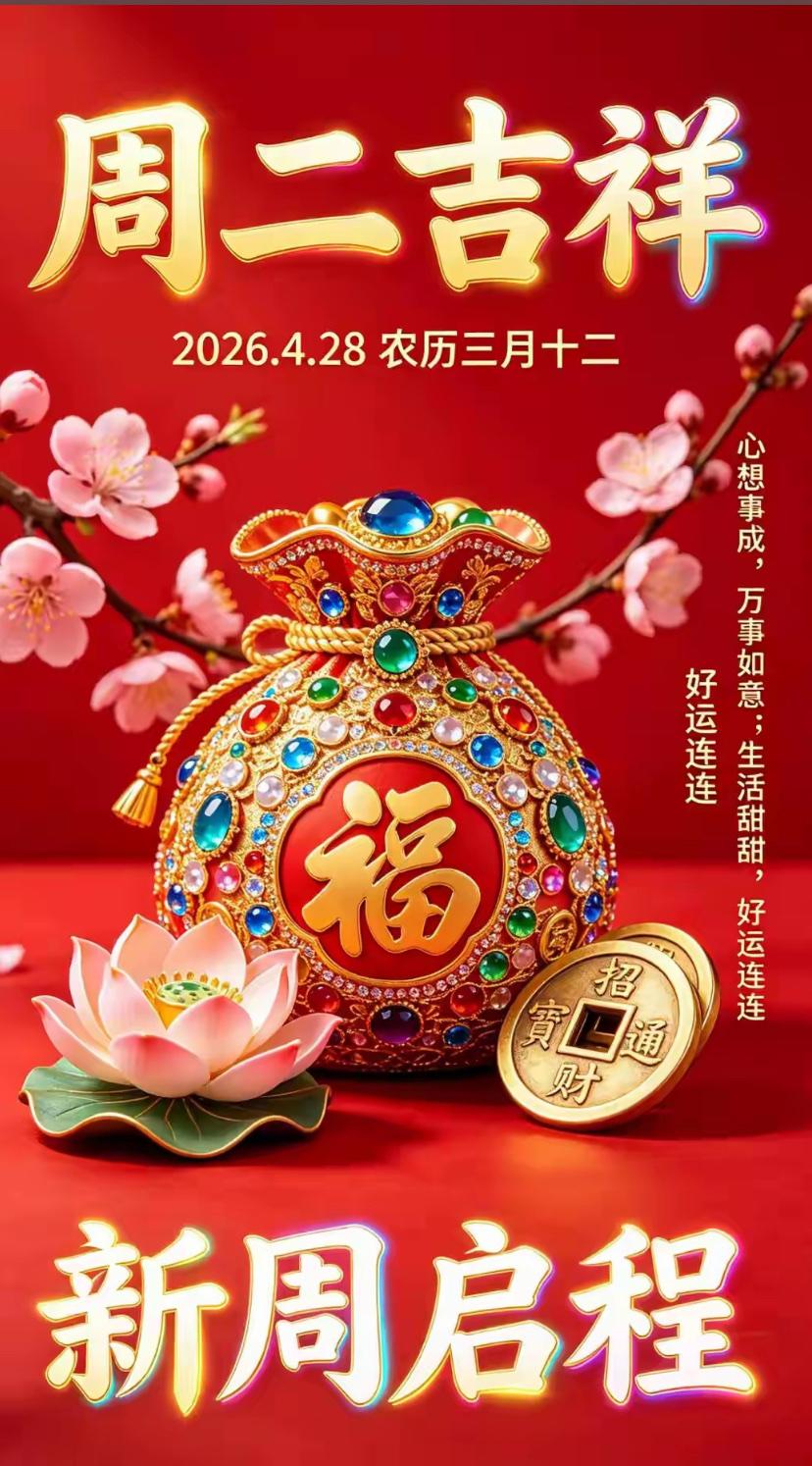 春日寄安,四季常安多喜乐,日日顺意享安康。 2026./04.28. [微风][玫瑰]早安周二[玫瑰][微风] 🌿🌻四季更迭,时光缓缓,清晨的每一声问候,都饱含着真挚的牵挂与关怀。愿你平安无恙,不被过往所困,不为未来担忧,用心把握每一个当下,不负今朝。平凡的日子里,实则藏着最实在的温暖,心若平静,处处皆是良辰美景。 🌿🌷人生的满足,不在于富足,而在于内心的知足;世事繁杂,无需强求,只需坚守本心。即便遭遇风雨,也能从容应对,愿你一路顺遂,时时展露笑颜。总有欢喜值得期待,有美好值得盼望,把日子过得温馨安稳,让祝福与温暖,长伴你岁岁年年。周二愉快!🌿🌷