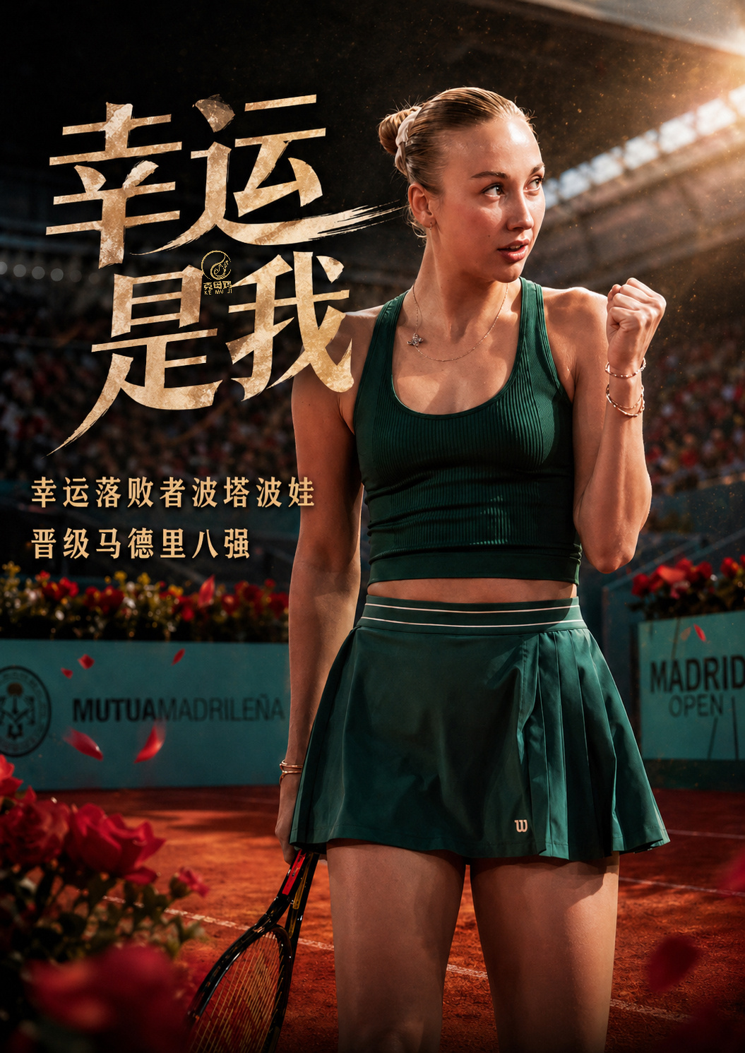 波塔波娃本来倒在资格赛决胜轮,结果因为凯斯退赛抽中幸运落败者,第二轮击败张帅后一路通关。