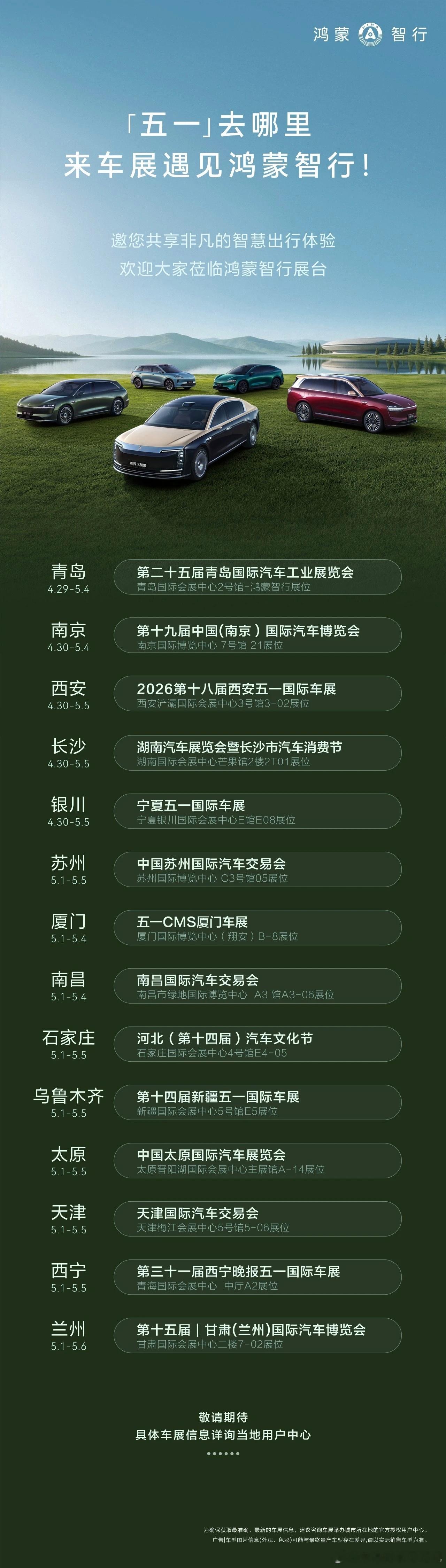 五一假期各地车展,大家可以看看自己喜欢的车鸿蒙智行五一车展
