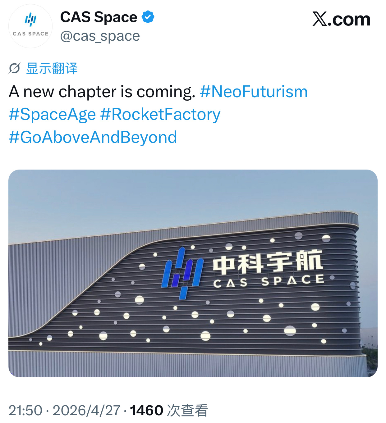【中科宇航火箭超级工厂竣工投产、未来可年产12发力箭二号】2026年4月28日,