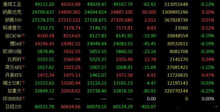 美股三大指数04月27日收盘涨跌不一,纳指、标普续创历史新高。 热门科技股多数收涨,英伟达涨4%创新高,英特尔涨近3%创新高,谷歌涨超1%,存储概念、闪迪涨超8%,美国雅保涨近6%,美光科技涨超5%。纳斯达克中国金龙指数跌1.20%。