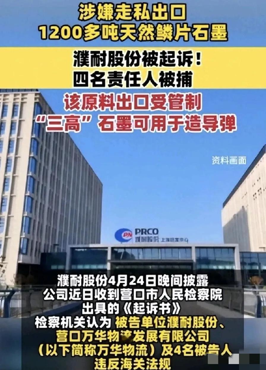 不明白,他们到底图什么,敢做这种走私的事情,他们得到了什么,普通人拿个充电宝都要被海关严查,这1200多吨石墨不用检查就能通关吗? 濮阳濮耐高温材料(集团)股份有限公司(濮耐股份,002225)、营口万华物流发展有限公司,以及4名直接责任人(已被捕)。 2024年4月至2025年3月期间,伪报品名走私出口天然鳞片石墨1243.55吨,涉案金额598.47万元。 2026年4月24日公司收到营口市人民检察院《起诉书》,被指控走私国家禁止进出口的货物、物品罪,目前尚未收到法院传票。 石墨和稀土一样宝贵,在国家明确发出禁令出口的时候,这些身居高位的人还敢铤而走险,他们到底为了什么? 四名责任人的完整名单: 1. 祁长生:濮耐股份钢铁事业部副总经理兼海外营销部部长(核心决策者) 2. 孟秋凤:濮耐股份海外营销部副部长(业务负责人) 3. 姚书阳:濮耐股份海外营销部单证科科长(具体报关执行) 4. 王丽波:营口万华物流法定代表人(物流方配合伪报) 祁长生、孟秋凤、姚书阳均为公司核心高管。 三他们走私的核心动机,图什么? 通关存在漏洞,通过修改品名、税则号列,把管制石墨伪报成普通石墨,骗过海关人工,系统审核。我感觉还是不可思议,难道不用实物抽查吗? 我们坐飞机,全身上下都要扫一遍,一个充电宝都要被反复检查,是否符合国标,而1200吨庞然大物没有检查实物,令人费解。 还有,目前没有任何官方公开信息披露祁长生、孟秋凤、姚书阳三人的个人具体分赃金额,所以他们冒着这么大的险,干这事,得到了什么? 我觉得,动机根本不是“个人拿现金” 祁长生(事业部副总)、孟秋凤(副部长)、姚书阳(单证科长)都是公司核心高管,年薪本身很高。 他们走私是为了绕开国家战略物资出口管制,帮公司完成美国订单、赚取业务利润、保住自己的高管职位和绩效。 所以,不卖给美国,绩效完不成,就不能留住自己的职位,总涉案598万,利润还要少,四个人就算分利润,也没多少。那也说不通啊! 这事情不值得,不是钱,难道是为了帮美国? 官方居然没有披露这四人照片,神秘兮兮的。