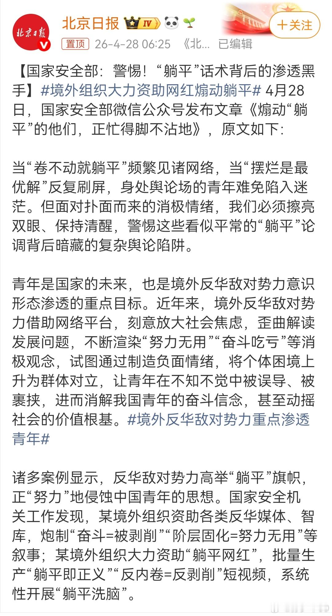 这才是前端时间处理各种躺平网红的原因吧境外组织大力资助网红煽动躺平