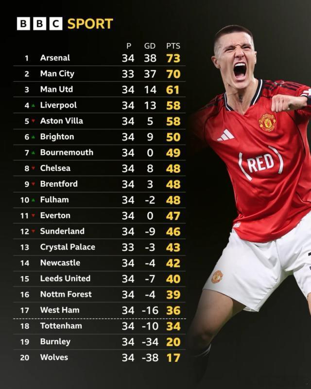从卡里克1月上任时排名第6、欧冠资格岌岌可危,到如今13场联赛赢下9场、稳居第3,曼联完成逆袭救赎!34岁的卡塞米罗连续3场主场破门,用拼到抽筋的表现诠释何为“红魔脊梁”;19岁小将梅努攻防兼备,多次关键抢断稳住中场,未来可期!