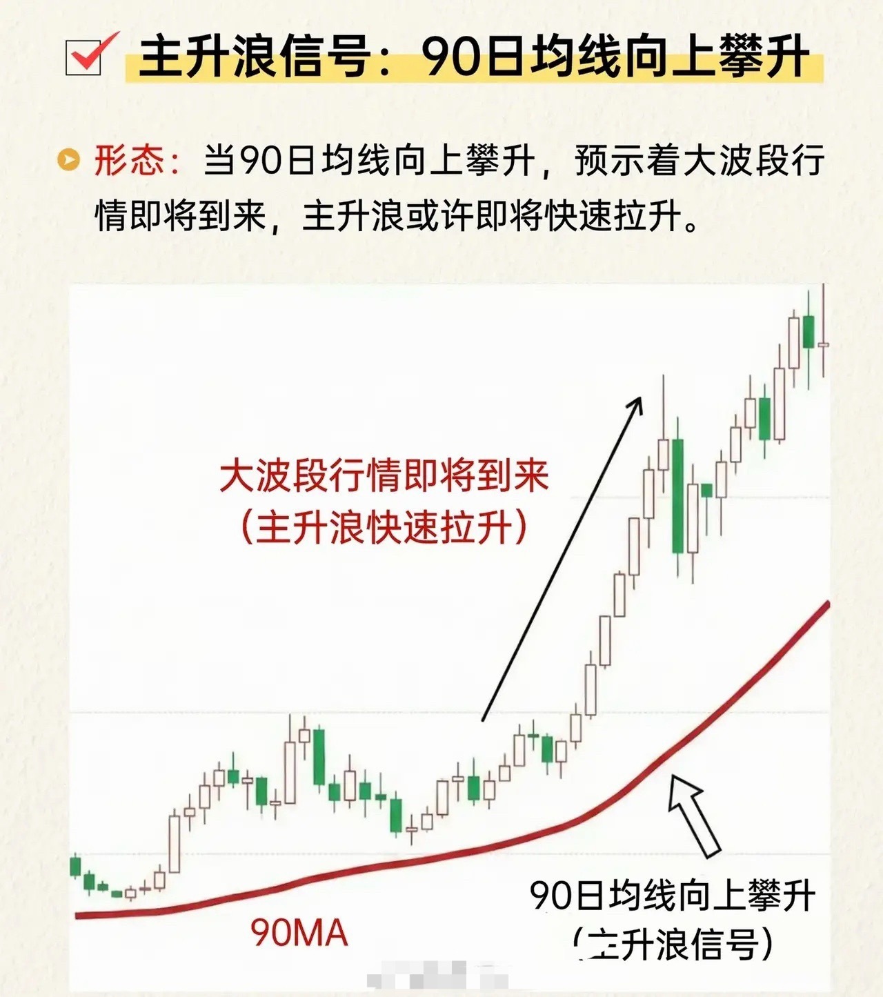 三、主升浪启动信号:90日均线向上攀升