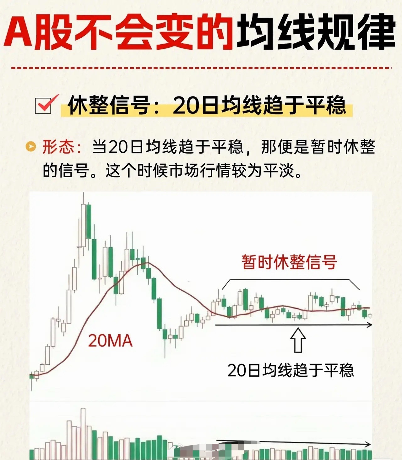 A股经典均线实战规律解析一、短期休整信号:20日均线走平形态特征:当20日均线(