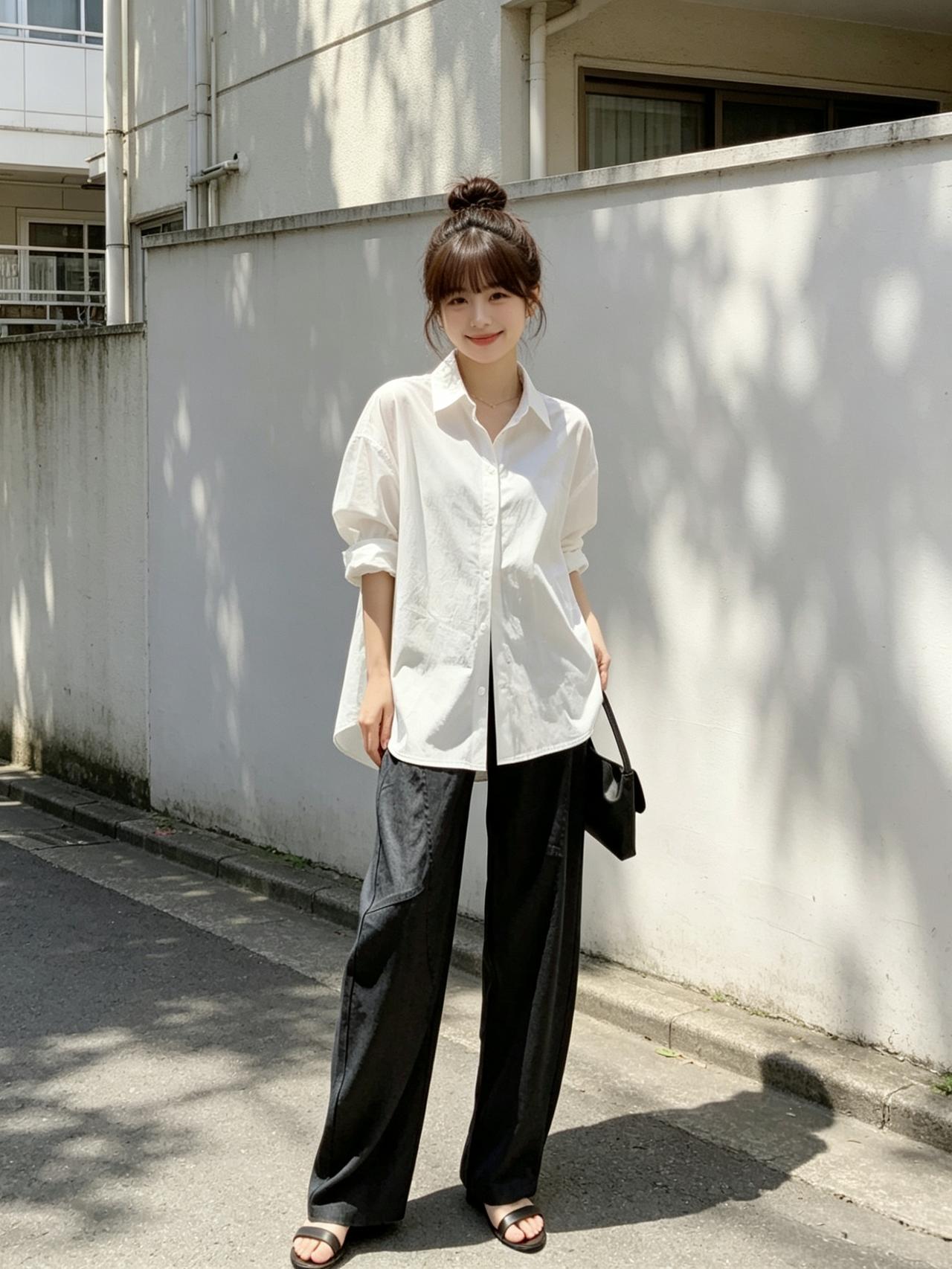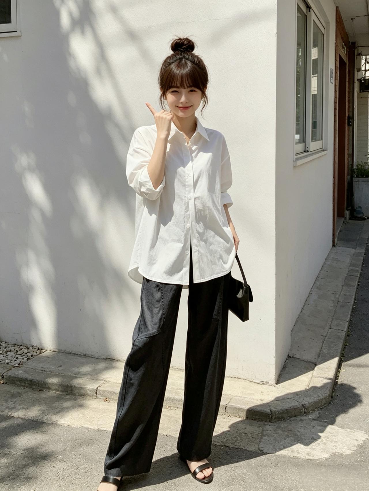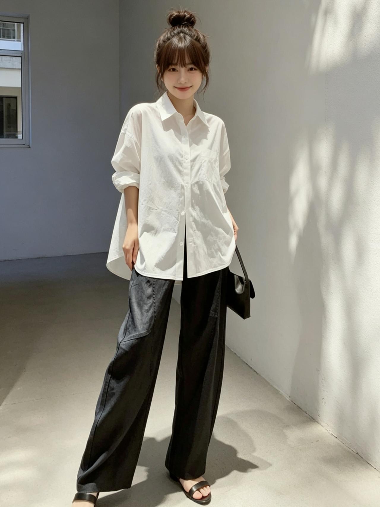 夏日清新穿搭,白色衬衫+黑色阔腿裤,轻松自在!🌞👗👠