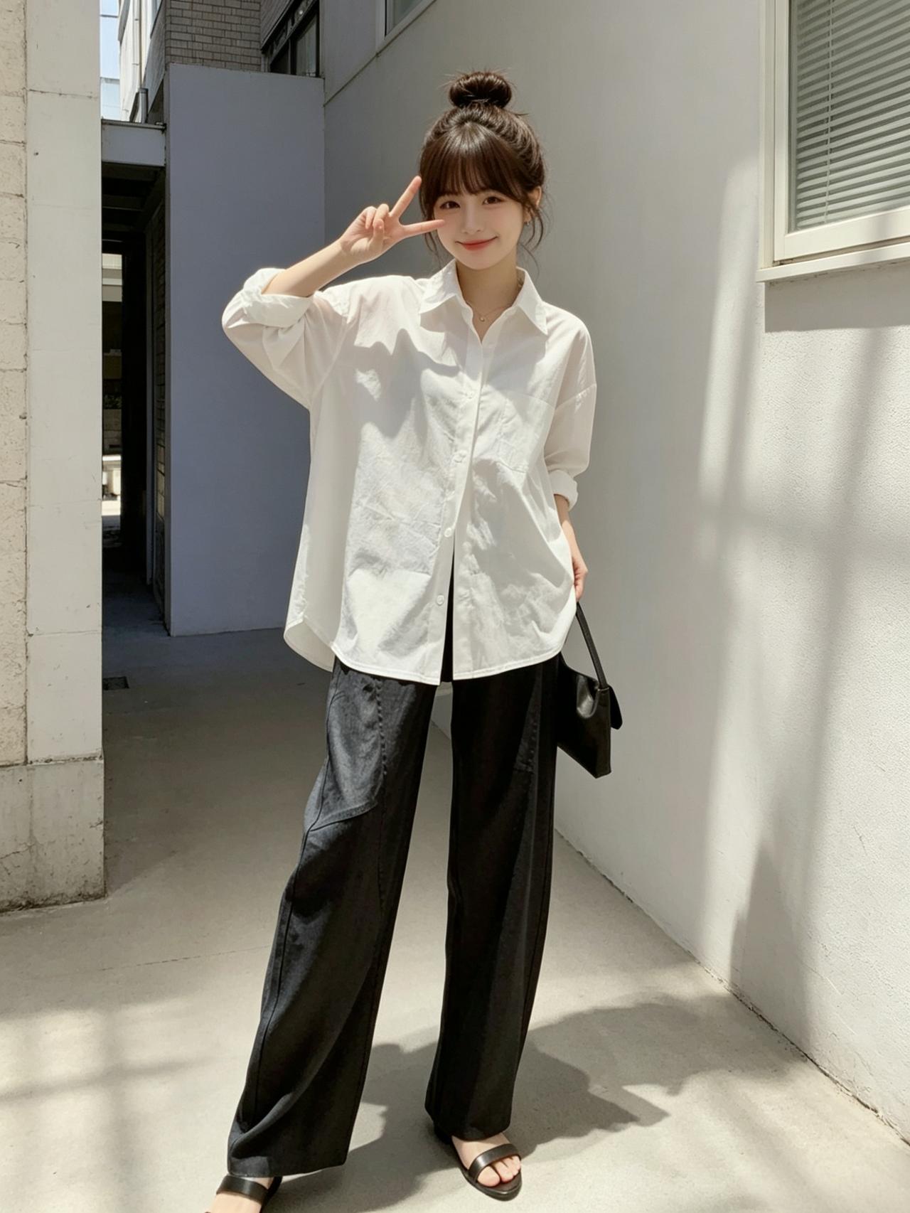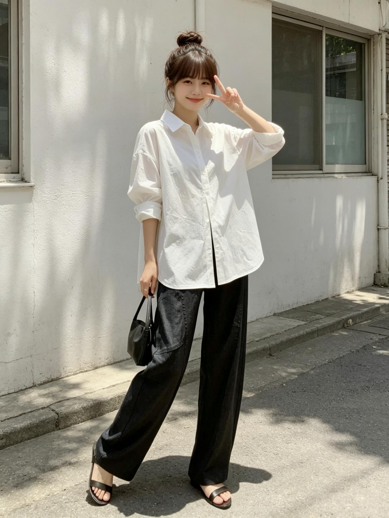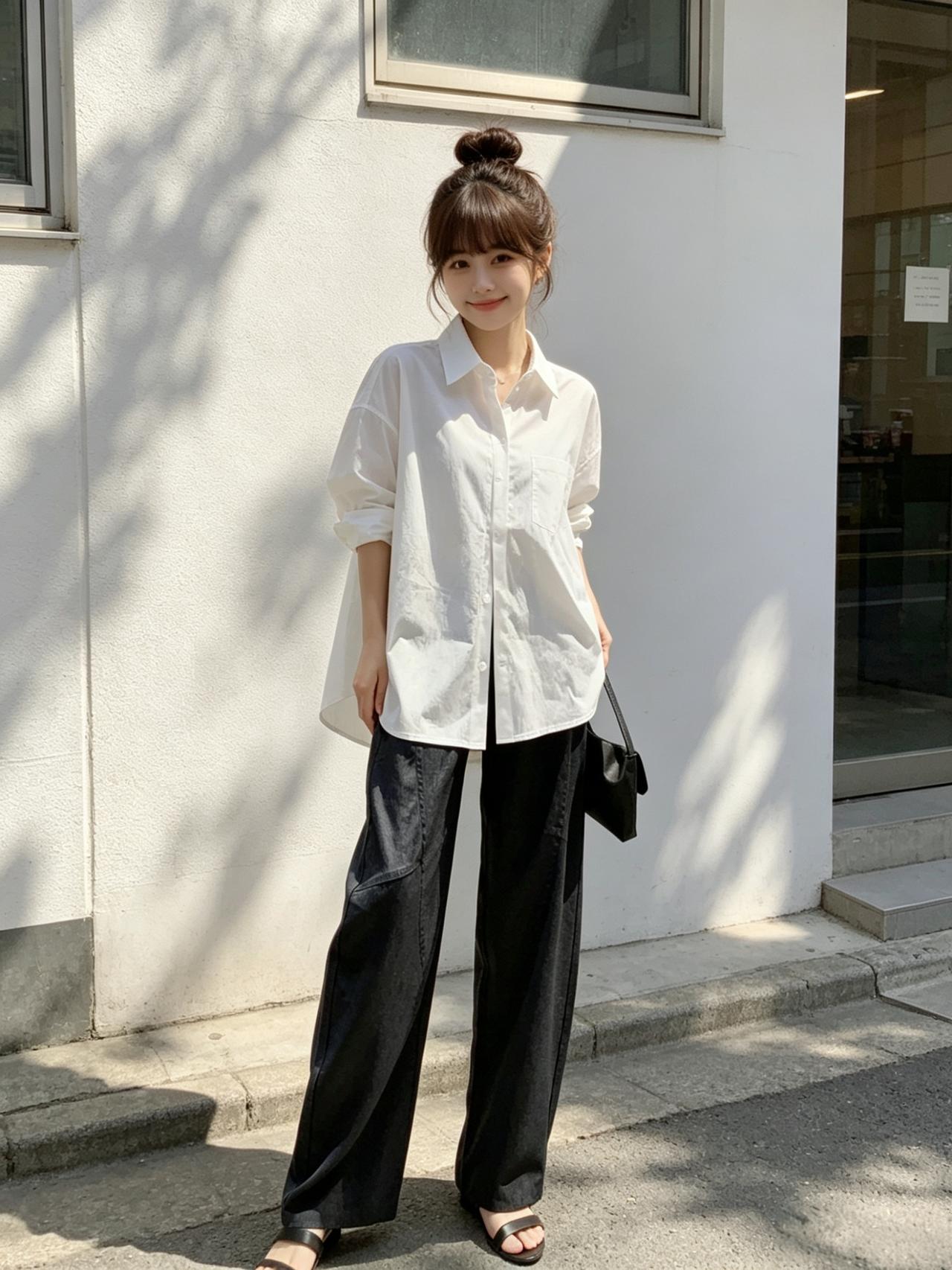夏日清新穿搭,白色衬衫+黑色阔腿裤,轻松自在!🌞👗👠