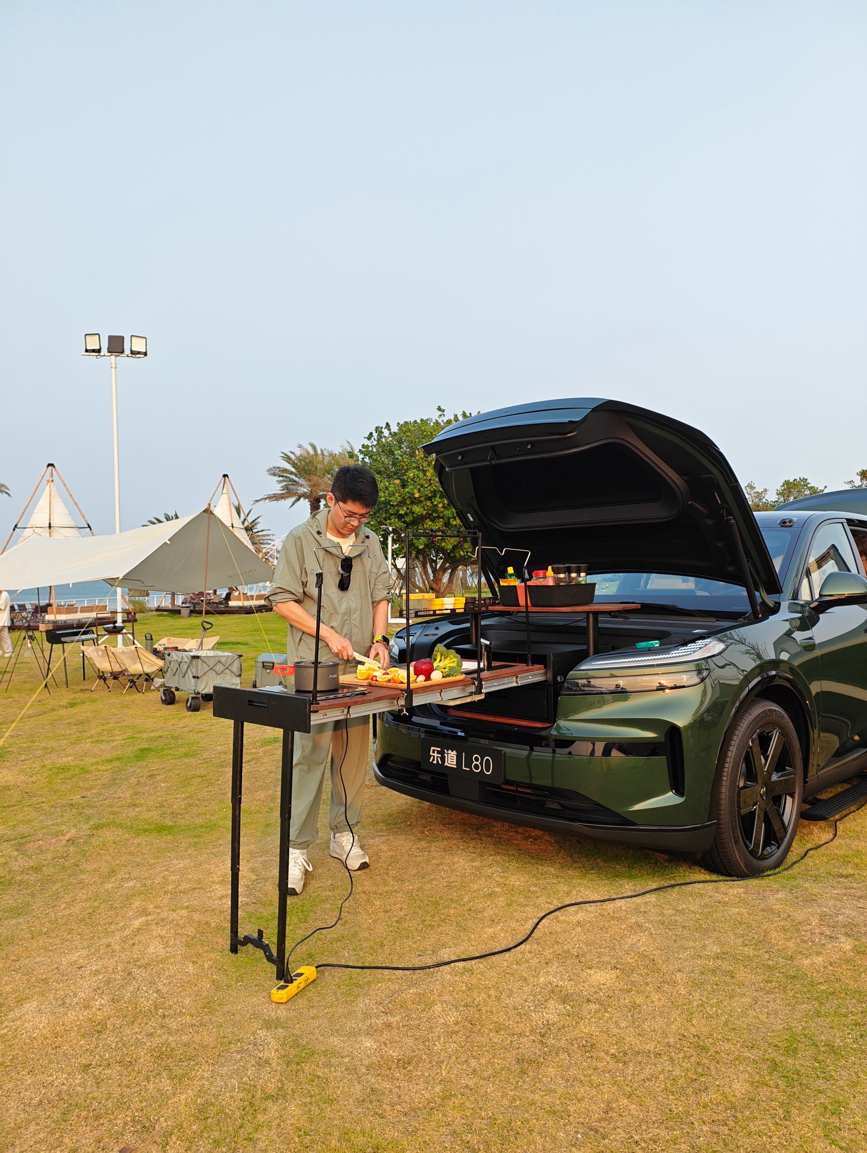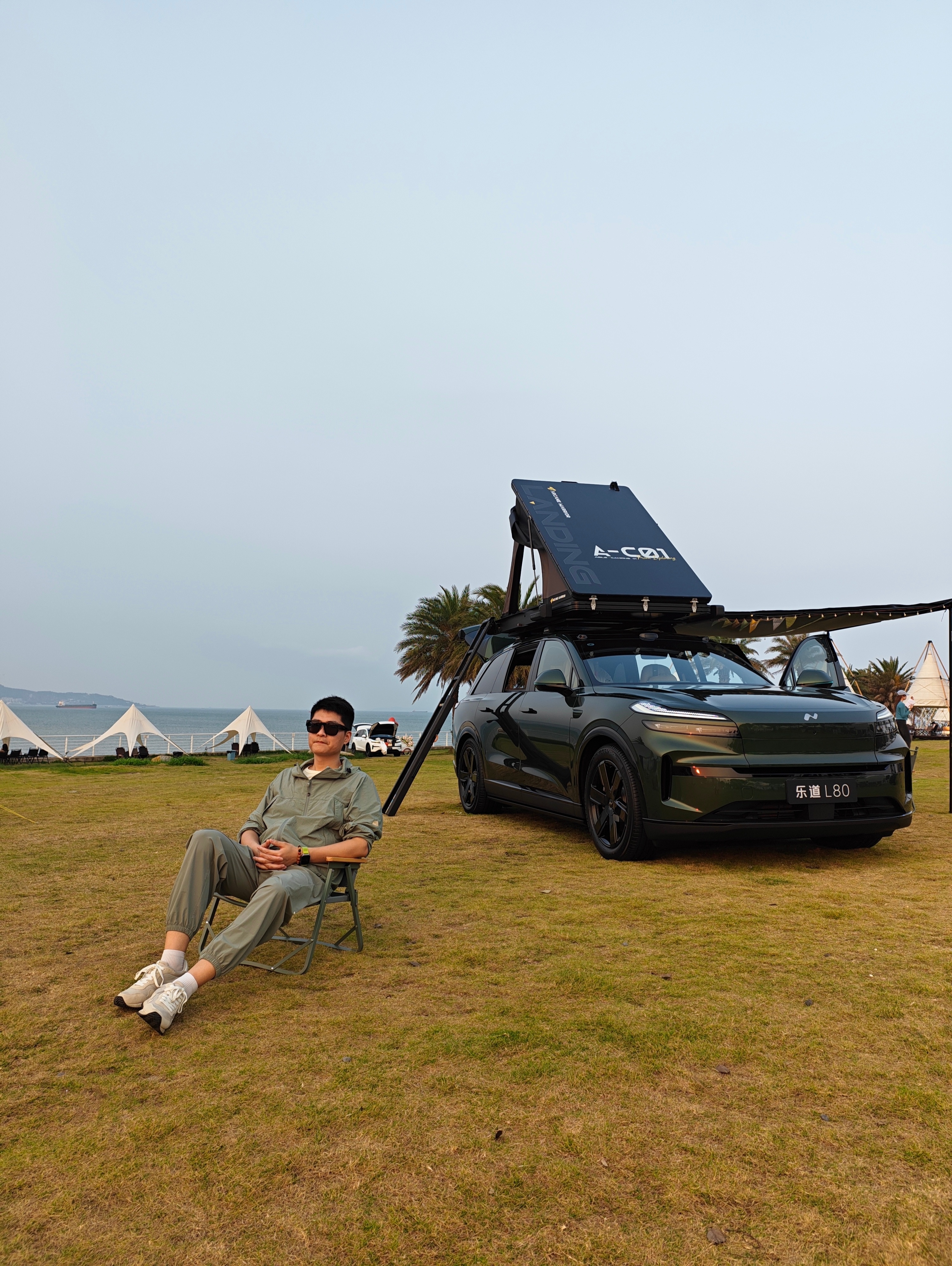 开着乐道L90来看海,露营装备没带就只能坐在前备舱喝个奶茶,吹吹海风了乐道汽车