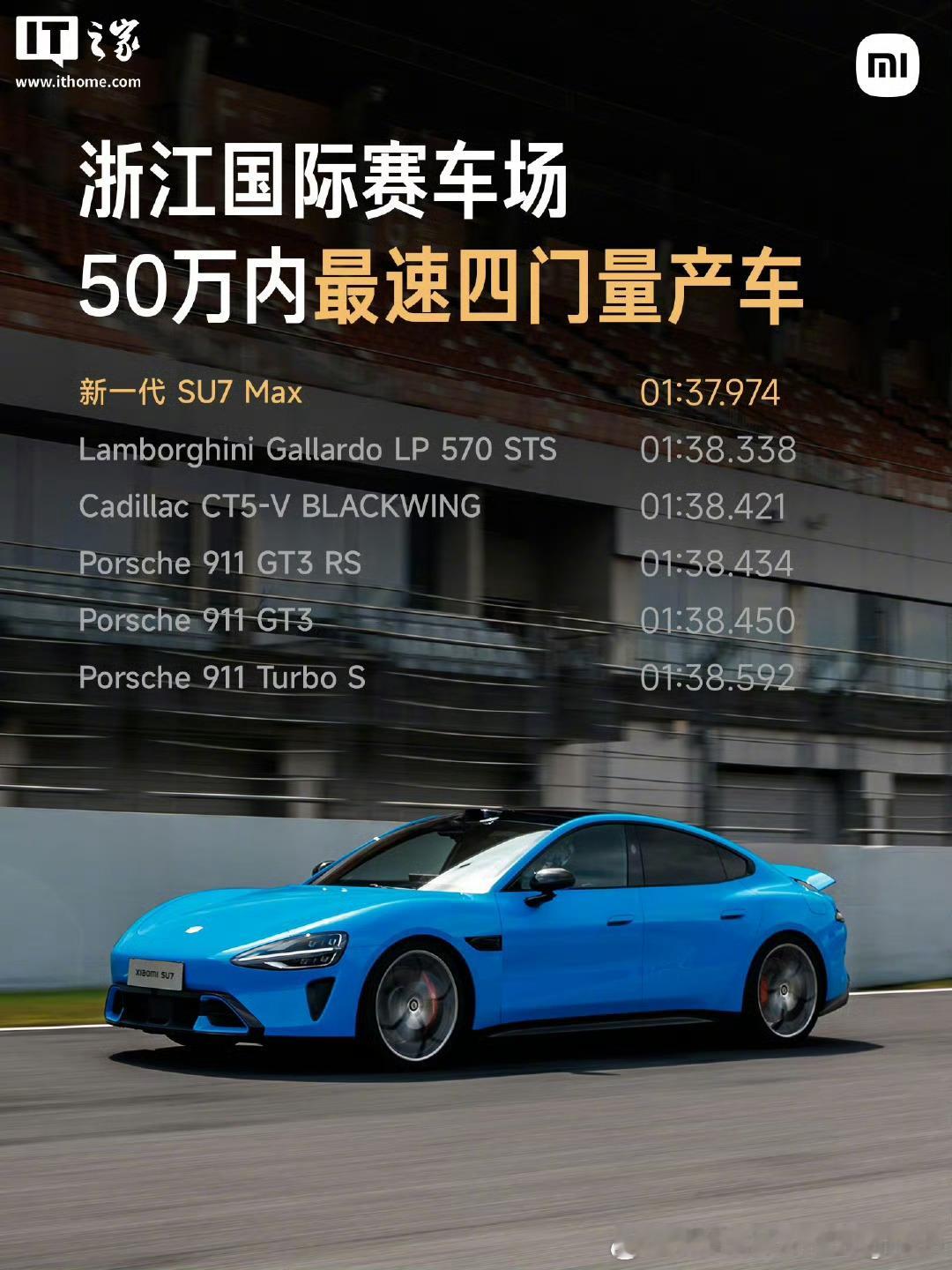 【新一代小米 SU7 Max 挑战浙江国际赛车场原片发布,圈速 1:37.974 成浙赛 50 万内最速四门量产车】昨晚,小米汽车官方公开了新一代SU7Max征战浙江国际赛车场的完整赛道实拍原片。车辆最终跑出1:37.974的圈速,登顶浙赛50万级别最快四门量产车型。(IT之家)