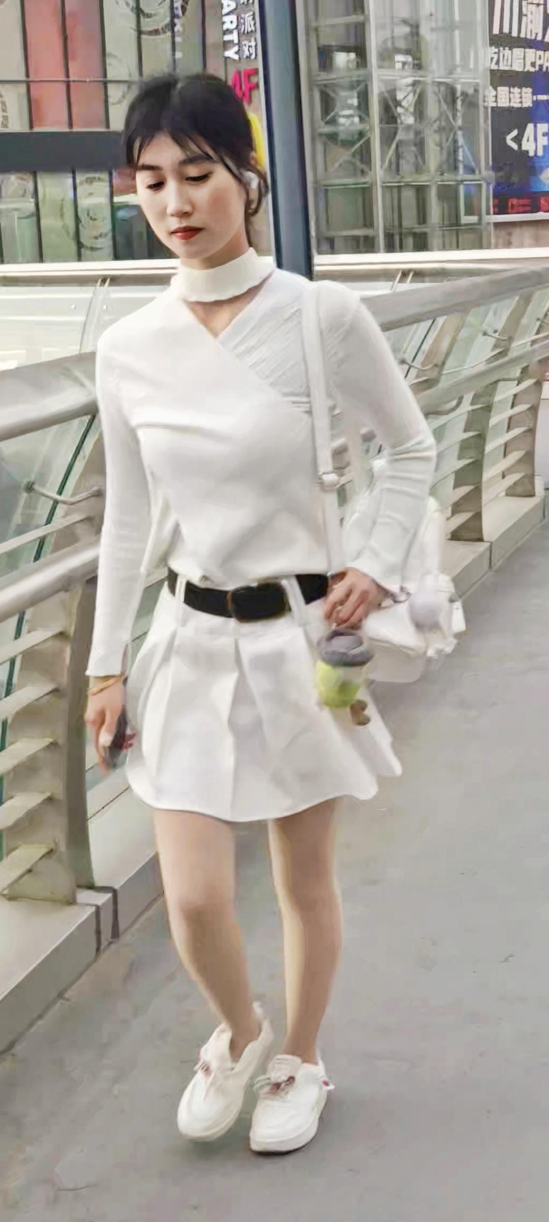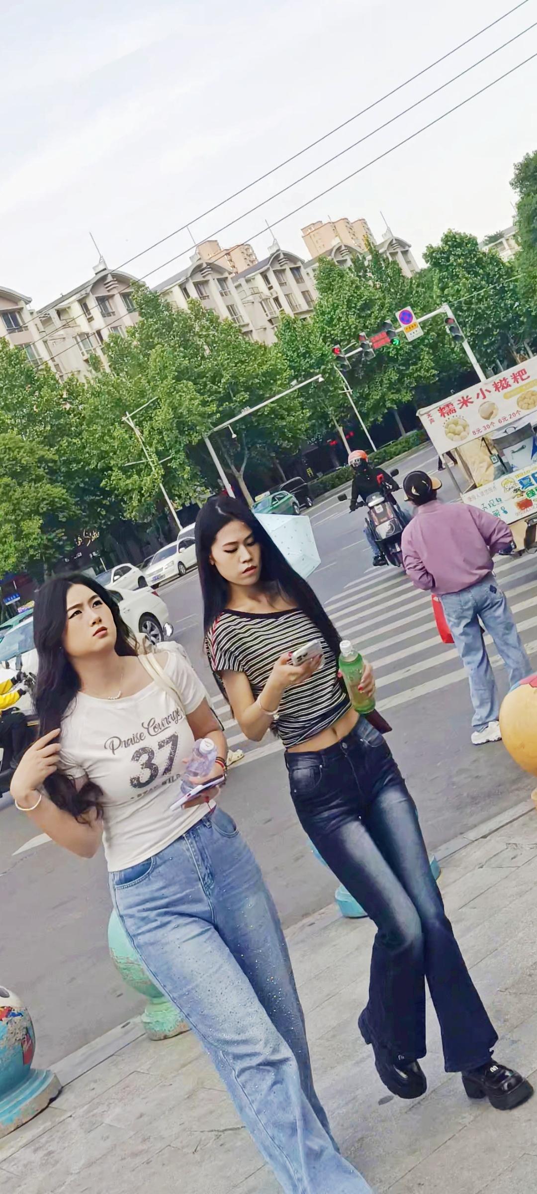 夏日穿搭指南:白色T恤+牛仔裤,轻松自在!🌞👗👠穿搭街拍高清美女好身