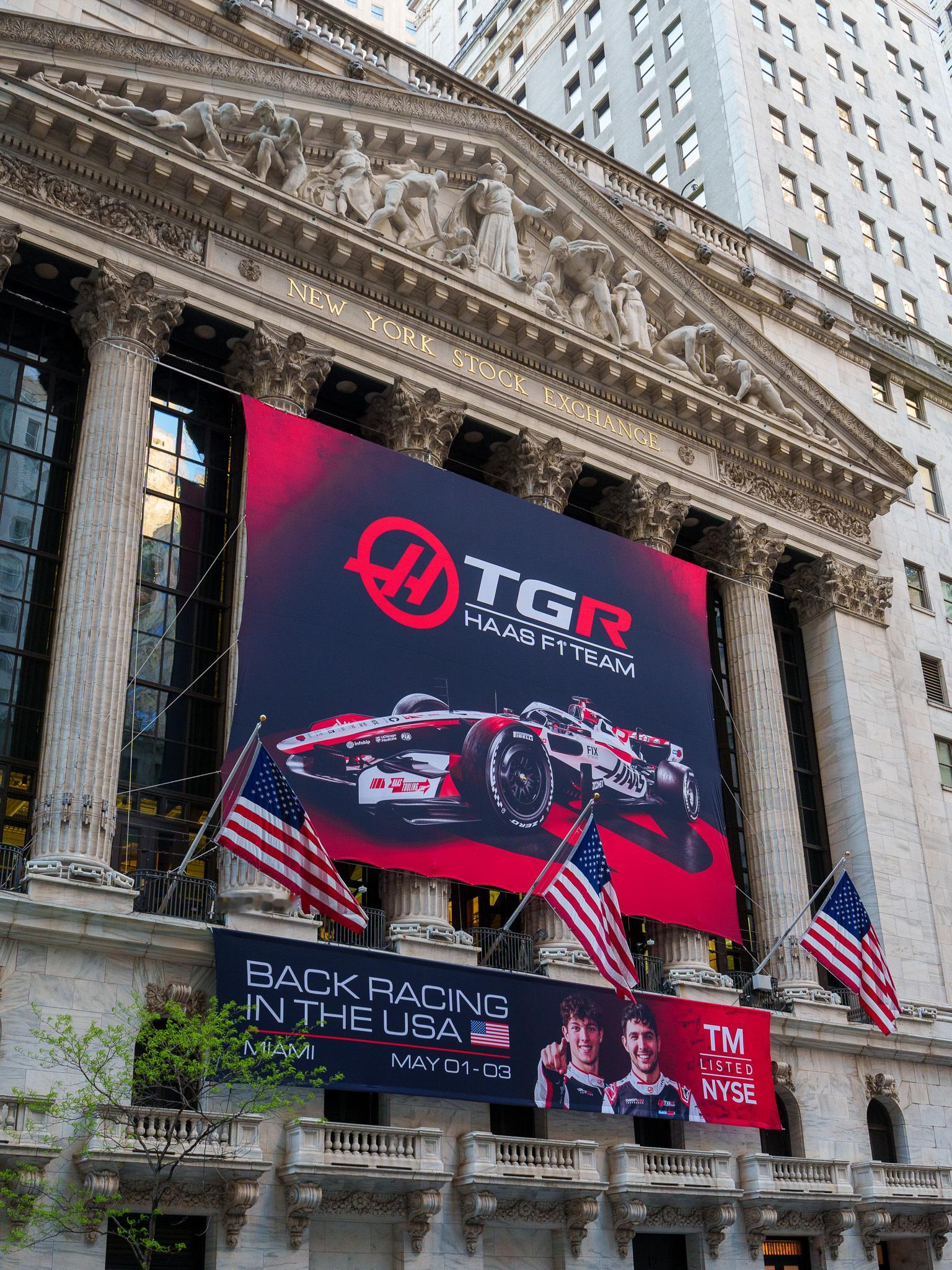 F1迈阿密大奖赛前夕,哈斯车队一众要员去了纽交所体验了一把敲开市钟~