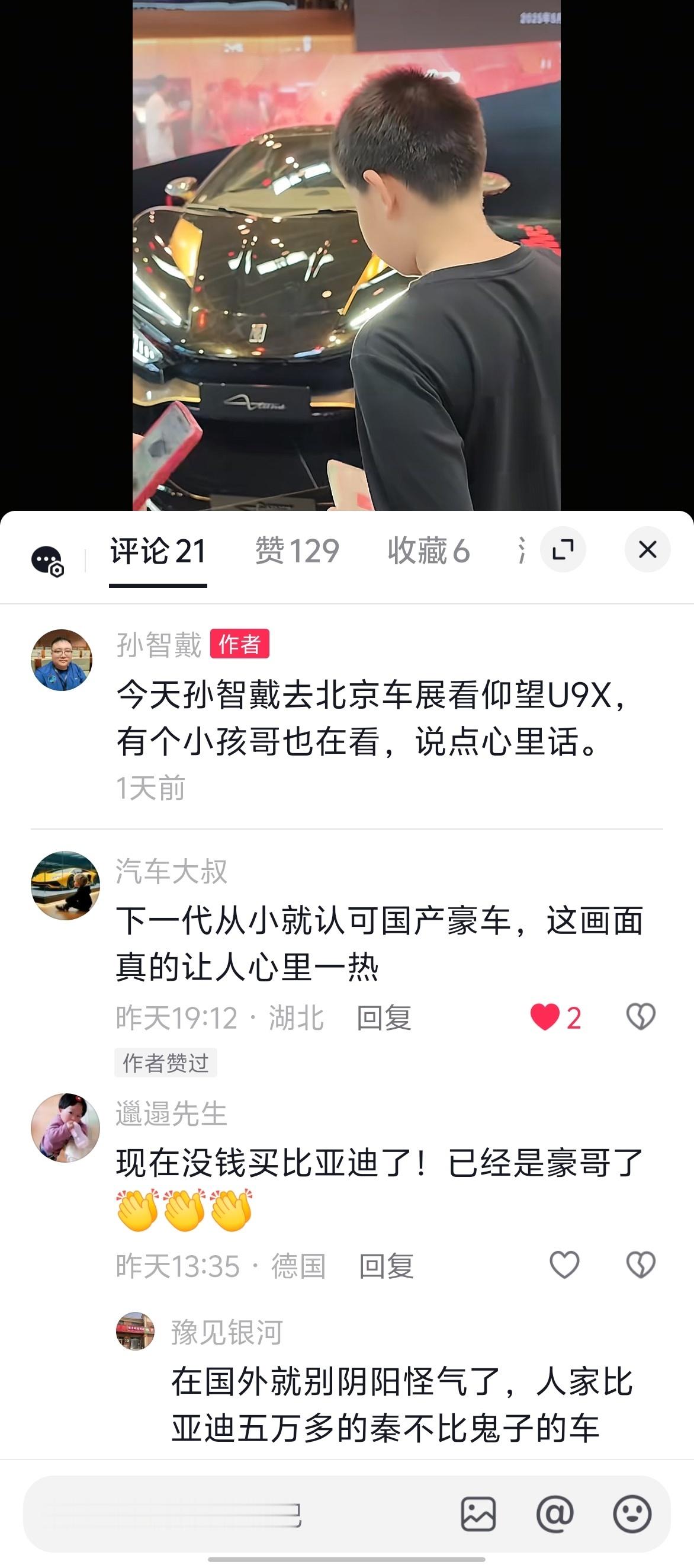发的小孩哥看仰望U9X的视频,评论区产生的共鸣,也让我们看到祖国的朝气和未来。这位在德国的网友说的反话,另一位网友一时没看明白硬刚