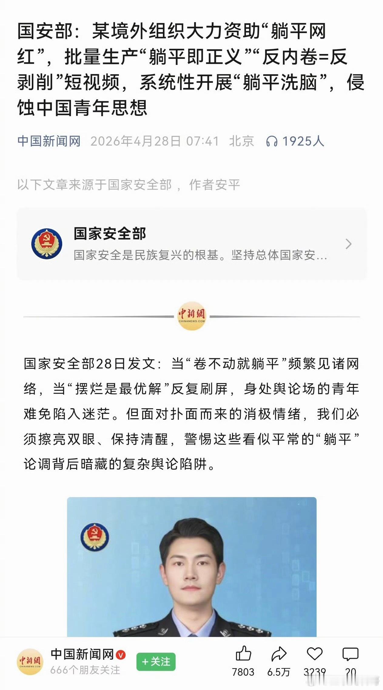国安部重磅发声!怪不得很多人体制内的人都躺平了,这是境外势力的躺平洗脑!必须值得所有人警惕!