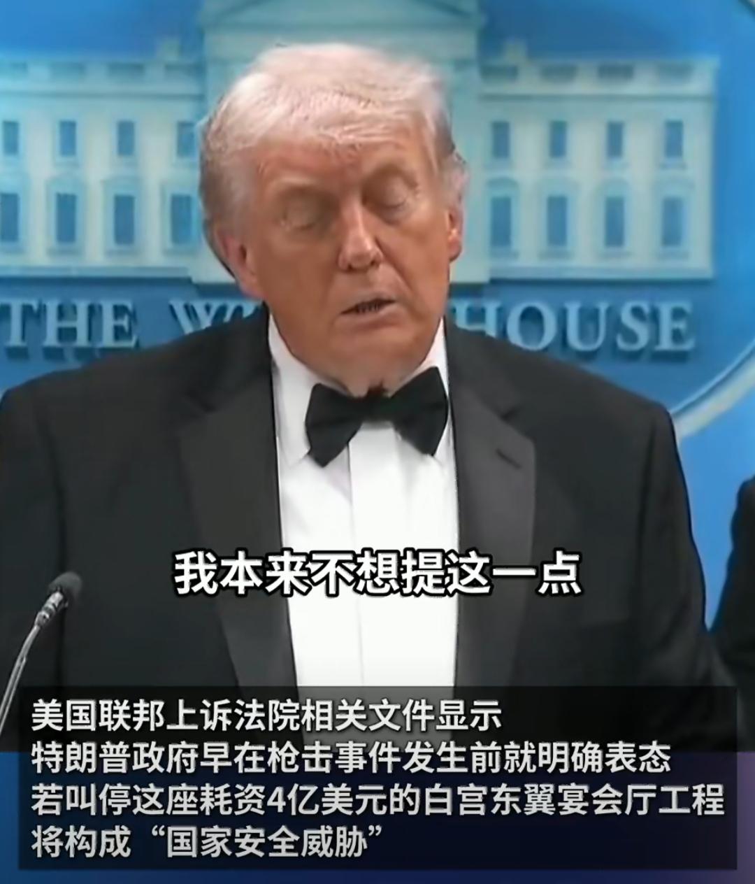 美国白宫晚宴枪击案“神助攻”,特朗普趁机兜售白宫宴会厅修建计划:安全得多,还有防弹玻璃。 特朗普在事发后被迅速撤离,随后多次公开将事件与白宫正在推进的宴会厅改造项目挂钩,称该工程是“军事级绝密项目”,具备防弹玻璃、防无人机设计、地下地堡及严格出入控制,能彻底避免类似事件。他强调:“如果这个高安全等级的宴会厅已建成,这种事根本不会发生。” 项目背景与争议:白宫宴会厅改造计划于2025年7月公布,预算约3亿至4亿美元,拟在原东翼位置建造占地约8361平方米的新厅,可容纳千人。项目因未获国会授权、未提交环评遭历史保护组织起诉,联邦法院已于2026年3月裁定叫停施工。特朗普对此强烈反对,称裁决“毫无依据”,并借枪击案呼吁立即撤销禁令。