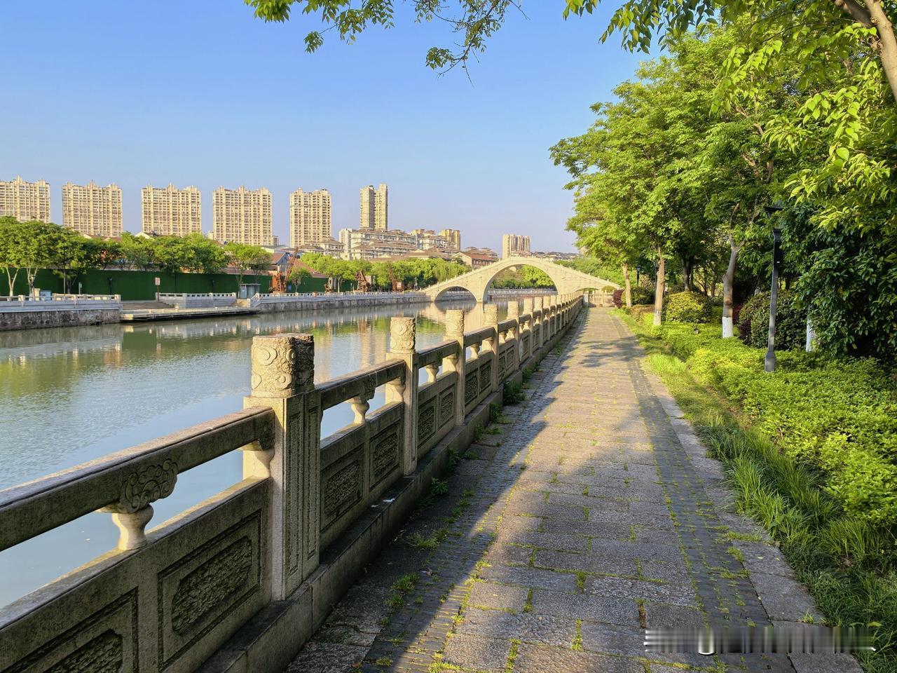 京杭大运河常州段上的文成桥,一座新建的三孔拱桥,主孔高大,确保运河上大船的通行,这种结构应该是以前运河多数跨河大桥的样子。