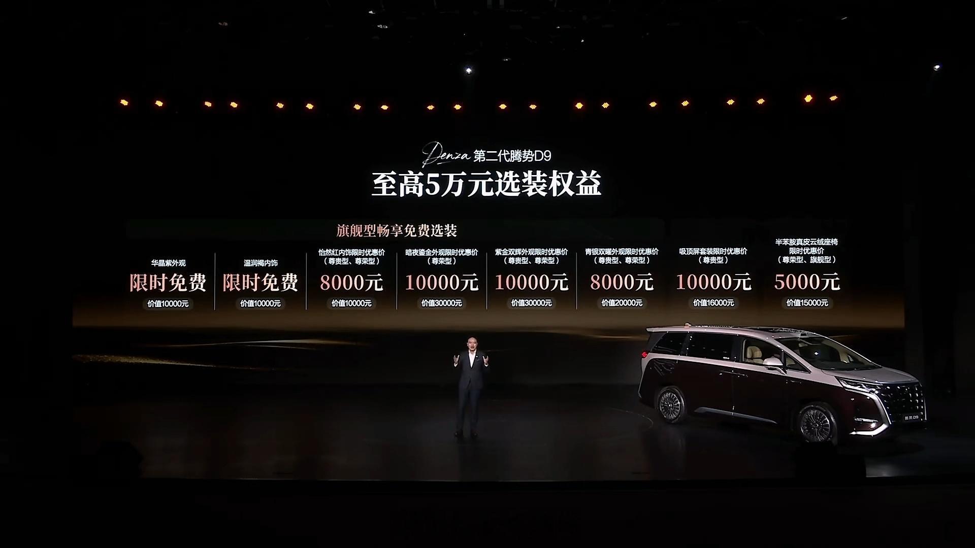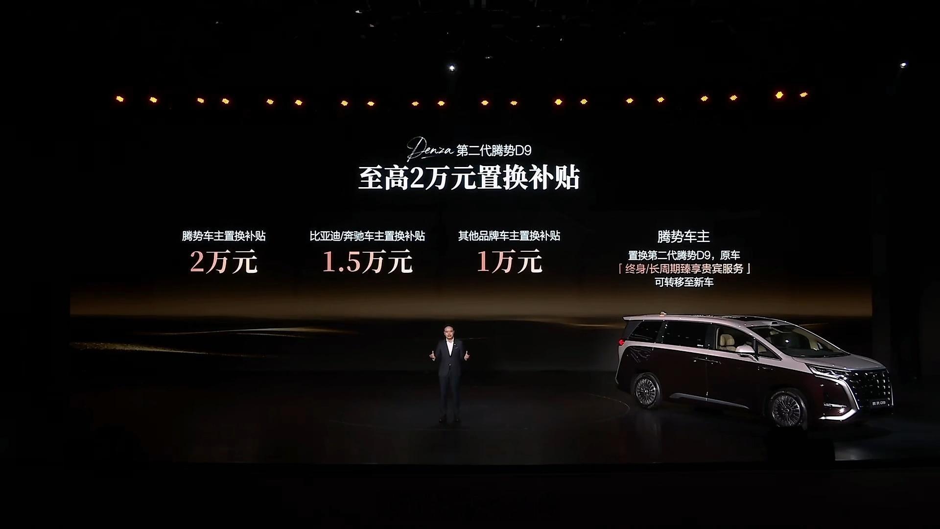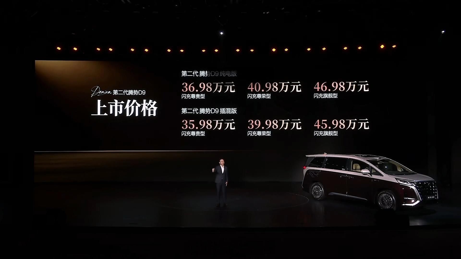 第二代腾势D9上市35.98万起,限时可享多重权益。全系标配第二代刀片电池+闪充