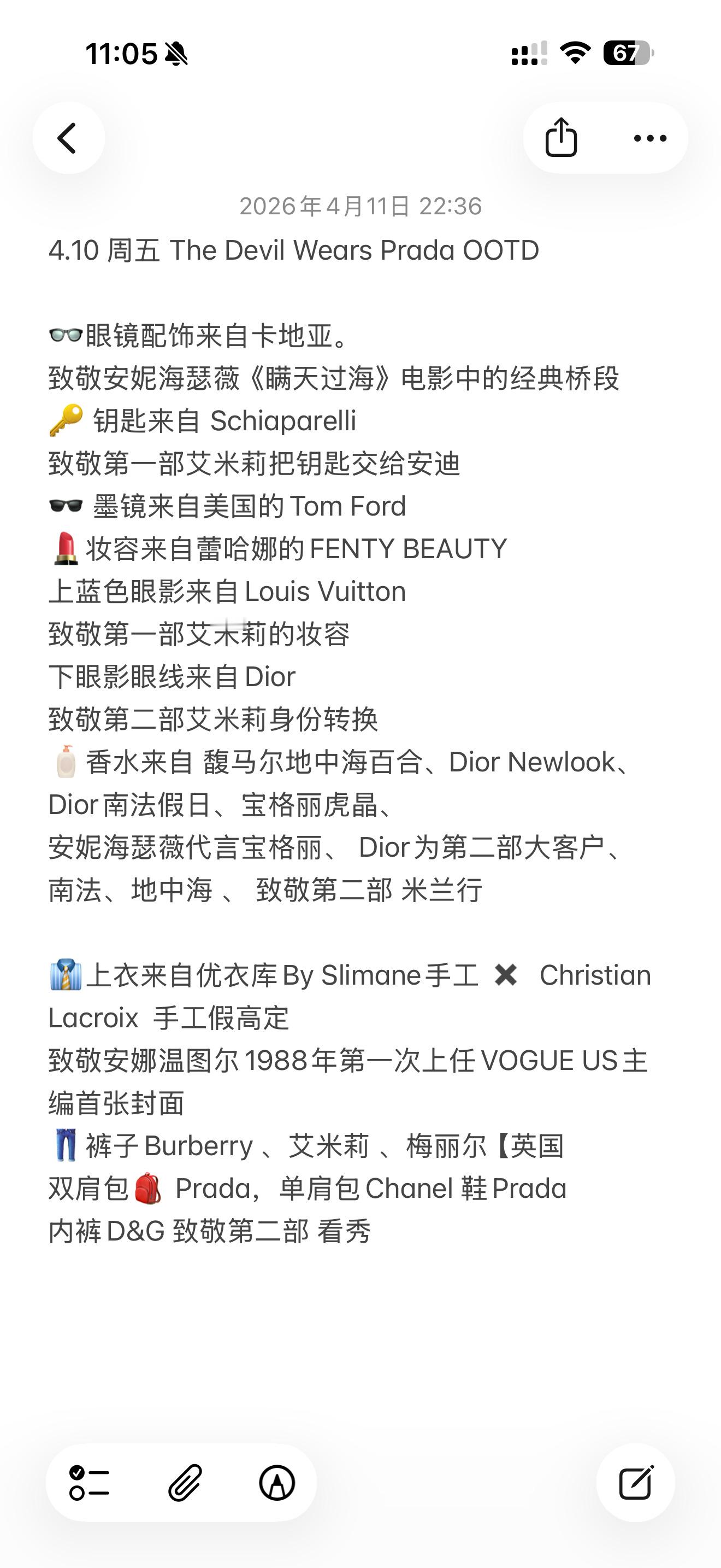 穿普拉达的女王2 这是一条 应该在4月10日发布的微博。 这是上海首映礼那天的look 。