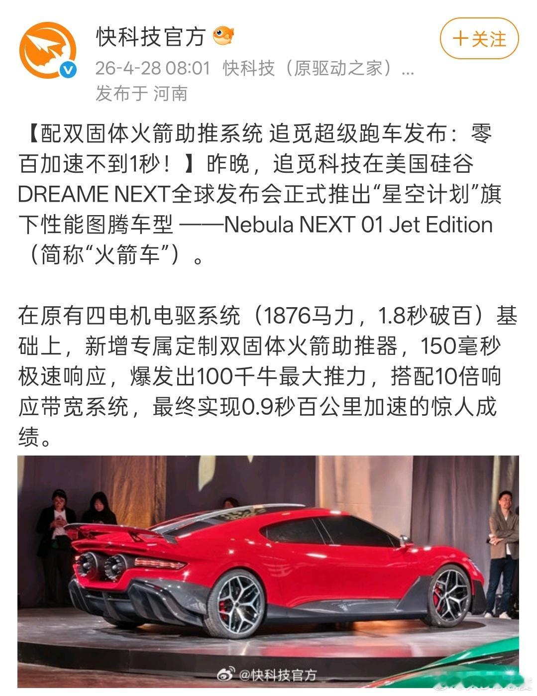 当你觉得汽车已经玩不出啥花活的时候,追觅,它来了!追觅火箭超跑百公里加速0.9秒