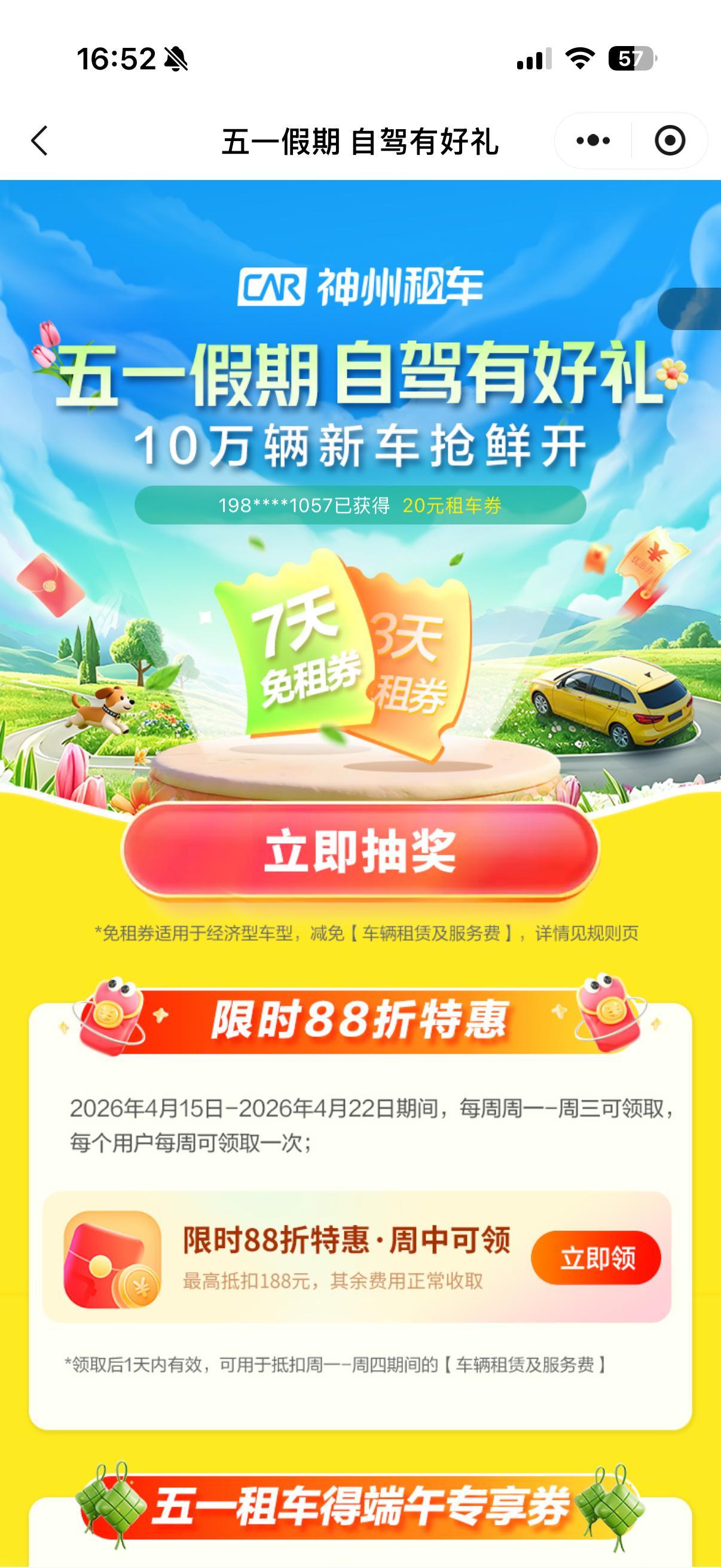 突然意识到人一定要流动起来五一自驾游就选神州租车!10万辆新车抢鲜开,上门取送超省心。假期租车不仅能抽7天免租券,还送端午专享券~神州租车品质服务,让你的出行更痛快
