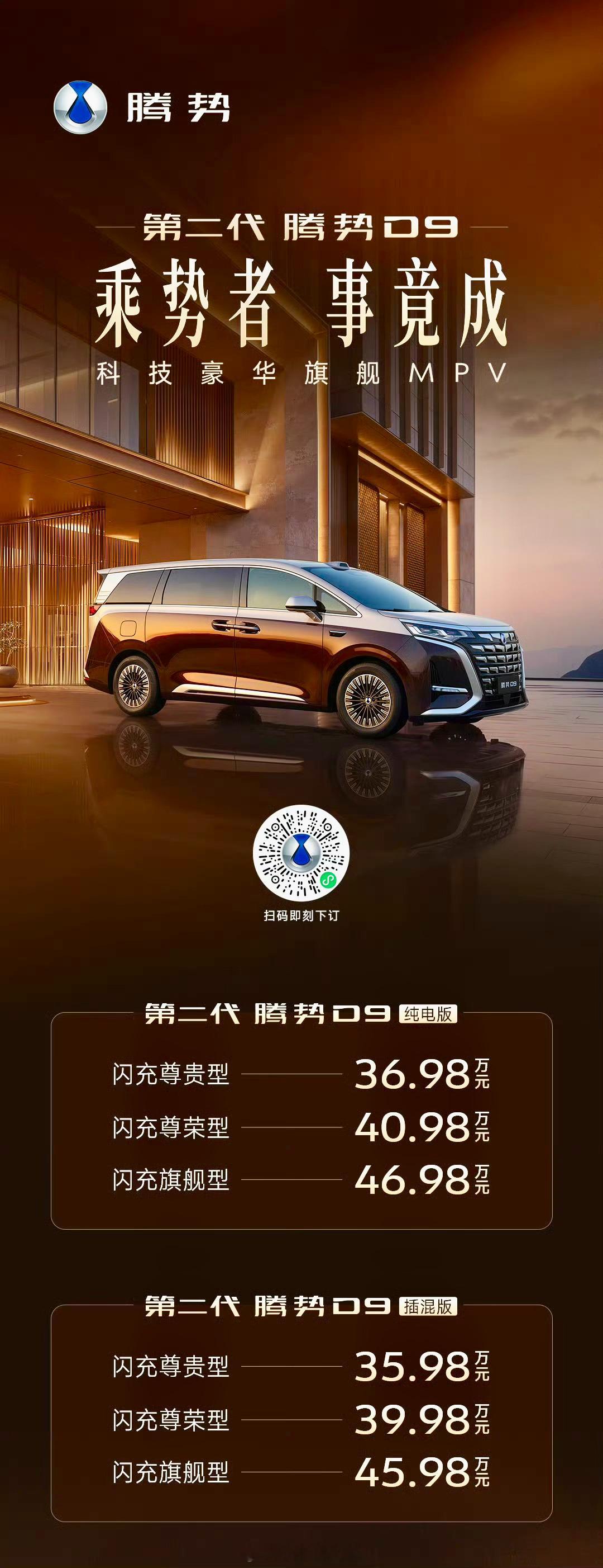 第二代腾势D9正式上市,豪华MPV标杆第二代腾势D9 35万起整车做了九处升级改进。