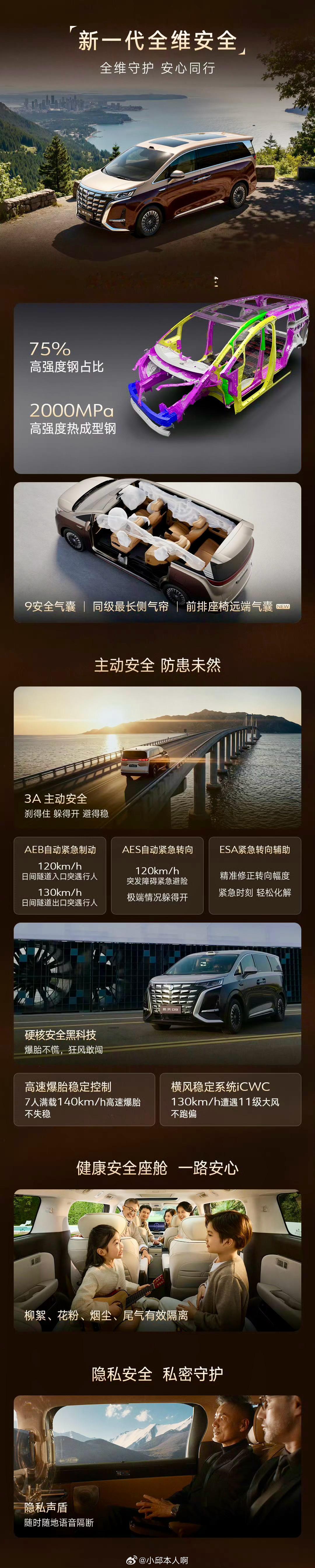 安全配置也很到位,车身用料结实,安全气囊数量多,车速开到130公里时,紧急刹车也能稳稳停下。