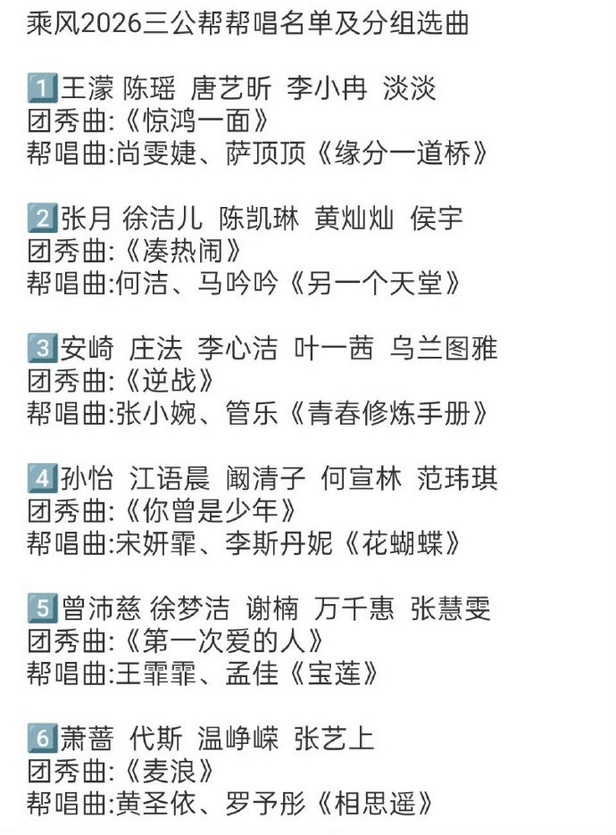 乘风2026三公分组选曲瓜总结王濛组:李小冉、唐艺昕、陈瑶、淡淡团:许嵩/黄龄《