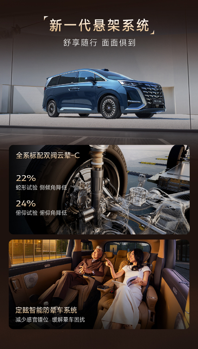 底盘和智驾也是这次的重头戏,双阀云辇-C悬架搭配路面预瞄系统,操控和滤震表现直线上升。天神之眼5.0高阶智驾基本覆盖了城市和高速路况,最让我意外的是行业首家给出了泊车兜底承诺,这对于开中大型MPV的新手来说简直是一剂强心针。35万起的定价,大家觉得这波能继续稳坐销冠吗?