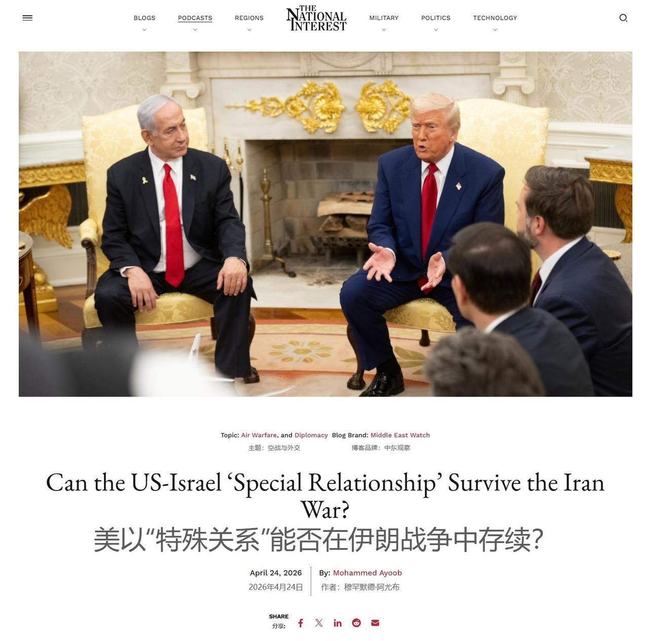 以色列发现美国不愿给以色列卖命了!特朗普已经被逼到了墙角,一边被以色列逼着重新开始对伊战争,连枪击年度白宫记者协会晚宴这种督战的大事件都搞出来了; 另一边是美国内铺天盖地的压力,石油美元岌岌可危,CPI指数开始暴涨,美国民众质疑到底是美国优先还是以色列优先?中期选举正在不断逼近,当然最重要的还是特朗普下个月就要来串门了,要是连伊朗都搞不定,这不是矮人一截吗? 纽约时报这两天发了两篇很有趣的报道,一篇是报道美伊战争后美国是否还能再替以色列卖命的问题,作战观点挺在理,他认为美国的战略定位是全球责任,比如地区冲突可能会影响全球经济时,美国的全球责任允许美国介入战争,但出于对美国自身全球利益的考虑,美国必须要避免长期战争。 以色列的安全诉求与美国的全球利益有部分重叠,但并不与美国利益一一契合,以色列寻求的事更区域化的安全需求,比如在美以伊战争中,以色列寻求彻底削弱或改变伊朗政权,以确保自身长期安全。 为了达成这个目的,美军已经亲自下场并支持以色列在海湾地区高强度作战40多天,一直到4月8日才达成暂时停火,这40多天的战争中,美国在海湾的军事基地重资产基本被摧毁;海湾国家损失惨重,中东自由港与金融中心的定位已经大打折扣,美军保护作用归零;霍尔木兹海峡在美伊战争开始后就被封锁,打了四十多天还没开放。 代价如此惨重,最关键的是军事目的也没达到,战前美以定下的战略目标是伊朗政府更替,摧毁伊朗弹道导弹能力和核计划潜力,也就是至少要拿到浓缩铀。这三大战略目标一个都没实现,根据美国情报部门的数据,伊朗还保持了60%的弹道导弹打击能力,浓缩铀还在伊朗的洞窟内。 以色列的安全诉求完全没有完成,内塔尼亚胡的主张是继续打击,就像特朗普说得那样将伊朗炸回石器时代,一夜之间摧毁一个文明!内塔确实是打算继续轰炸的,但是特朗普已经意识到这事儿不靠谱了,再打下去,中东盟友都“投共”了,石油美元要崩溃了,中期选举要泡汤了! 所以现在特朗普尽管一直在叫嚣最严厉封锁、三大航母齐聚中东,要升级对伊军事行动,但事实上却是特朗普不断TACO,自己给自己延长停火,天天在白宫接电话告诉记者赢麻了。特朗普真正的目的就是避战,或者说叫止损,特朗普非常想要结束战争,但他不知道如何结束! 一来是伊朗根本就不接茬,不解除封锁坚决不谈判,如果美国认怂谈判那从面子上看也搁不住!二来呢以色列也不允许,几十年来终于有一个美国总统上了以色列的当,美以决定一起攻打伊朗,说好要把伊朗打趴下,现在只打了一半,怎么可能会放美国先跑? 纽约时报的另一篇报道更是毫不留情的揭露了特朗普面临的尴尬局面!报道引用了经济学家对伊朗战争潜力的估计,认为伊朗至少还能在这场战争中坚持6个月以上,即使伊朗在阿曼湾以及阿拉伯海执行最严厉的封锁。 《国家利益》杂志此前报道称这些策略很有用,但是时间不够了,因为伊朗背靠亚欧大陆,中亚铁路运输和公路运输能确保伊朗不会陷入绝境,里海的海运能从俄罗斯大规模运送战略物资到伊朗,伊朗真正坚持的时间可能比经济学家预估的还要久。 伊朗依托本土优势可以打一场相对的持久战,但是留给特朗普的时间却没那么多了,因为特朗普的中期选举迫在眉睫,按正常时间推算,2025年底就要开始准备了,2026年1-3月份就要启动大规模造势了,4~9月份各州选举就要渐入正轨并逐步高潮了。但是现在特朗普却陷在了中东泥泥潭。 这次中期选举对特朗普极为重要,特朗普执政第一年打输了中美贸易战,第二年要是再打输美伊战争,那这选举还要再继续吗?现在的特朗普急需一场赢麻了的叙事来挽回他的声誉,来证明他不是以色列优先,而是美国优先。 无论是从美国国家利益角度考虑还是从特朗普个人政治前途考虑,在美伊战争中将美国利益与以色列利益做一个切割,未来美美以之间的关系应该是利益交换,而不是美国单方面替以色列卖命。 这个说法没毛病,但是以色列能同意吗?特朗普没有把柄在以色列手里,以这个地产商人摸爬滚打几十年的生意场经验,也不至于会上以色列的当啊!这次在年度白宫记者协会晚宴上发生的枪击事件的枪手科尔·托马斯·艾伦被披露身着支持以色列的服装! 尽管他并没有闯入最核心的宴会厅内,但他的行为已经足够对特朗普予以震慑,以色列这是来督工吗?特朗普要赶紧筹备对伊地面战了吗?