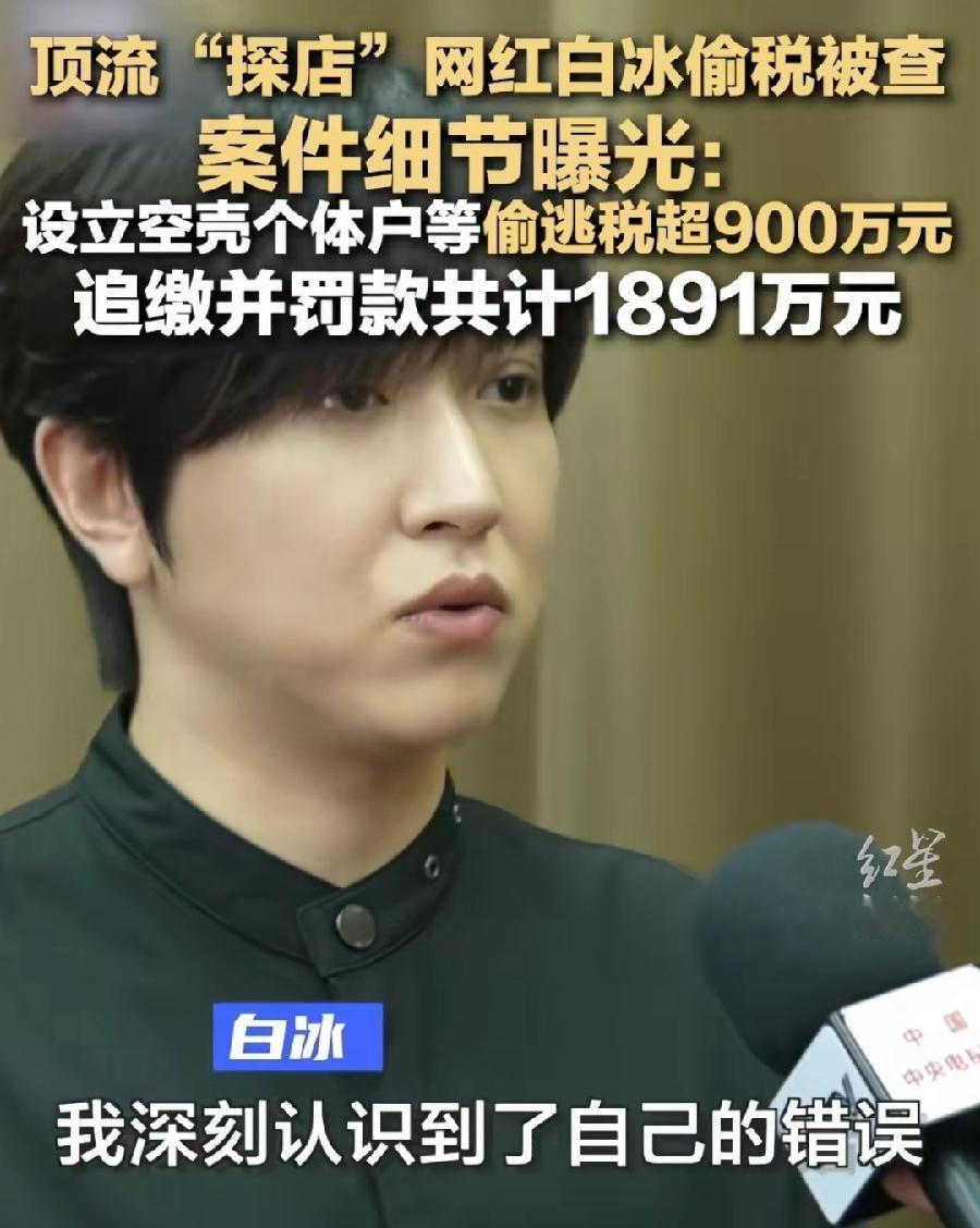 大网红太赚钱了!4000万粉丝探店网红白冰,4年偷税911万,按照45%税率计算,税前收入近2000万!平均一年500万!比开一个小型实体工厂还赚钱,而网红啥成本没有,探店还免费好吃好喝,这还是明着收入,不包括商业活动、粉丝赞助什么的! 就这还知足,偷国家的钱?!被罚老实了!合计1891万,全吐出来倒贴,咎由自取!平时炫富开豪车穿飞行服,又白又嫩扮富二代,现在出来认错老实了,黑色正装,发型也梳齐了,脸色都黄了!现在网红乱象丛生,希望国家加大查处力度!