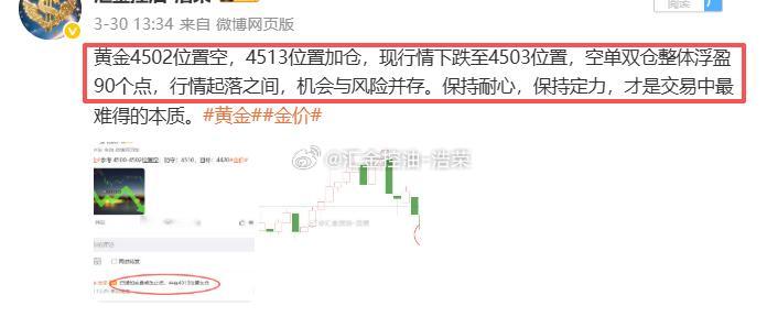 黄金4502位置空,4513位置加仓,在4503位置空单双仓止盈90个点利润