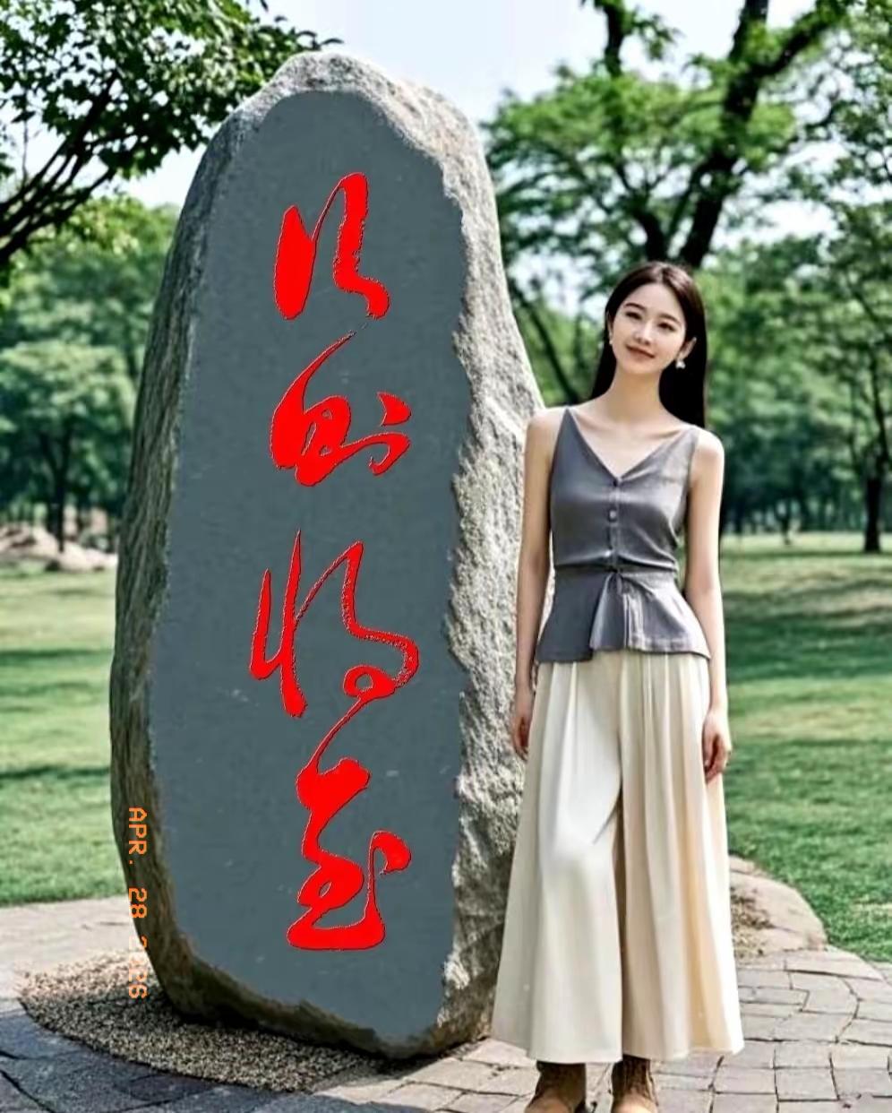 偶遇古碑认字难,求教头条有才人 偶遇一处景致,身边女子温婉大方十分亮眼,一旁石碑上的书法也笔力浑厚,透着浓浓的古韵。女子的美貌咱就不多夸了,单单盯着石碑上的四个大字,我来来回回瞅了不下十遍,也就勉强认出第三个字是“收”,剩下的三个字看了又看,愣是琢磨不明白,属实是才疏学浅。 中华书法博大精深,石刻古字更是古朴凝练,笔画藏锋、结构考究,历经岁月打磨更显内敛韵味,不懂书法的普通人,很难一眼辨出字形。逛景区遇到这类碑刻,常常被文字魅力吸引,却也总因认不出字而犯难。 头条里藏龙卧虎,各路有才之士、书法爱好者齐聚,有没有懂行的朋友,能帮忙解惑,这石碑上的四个大字到底是什么?