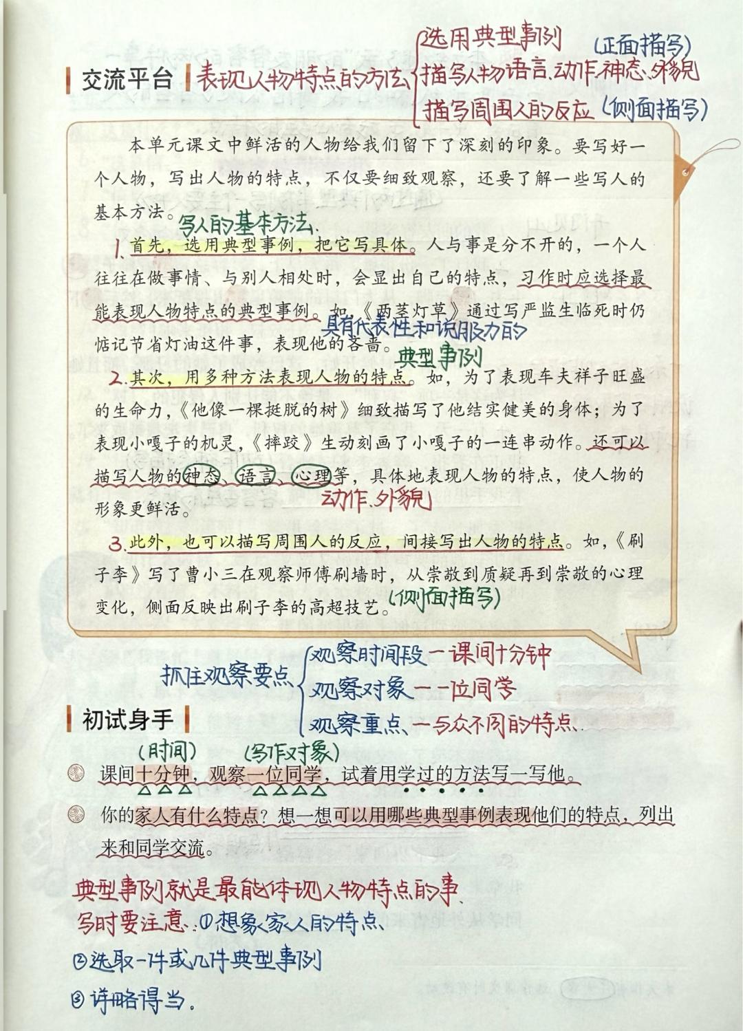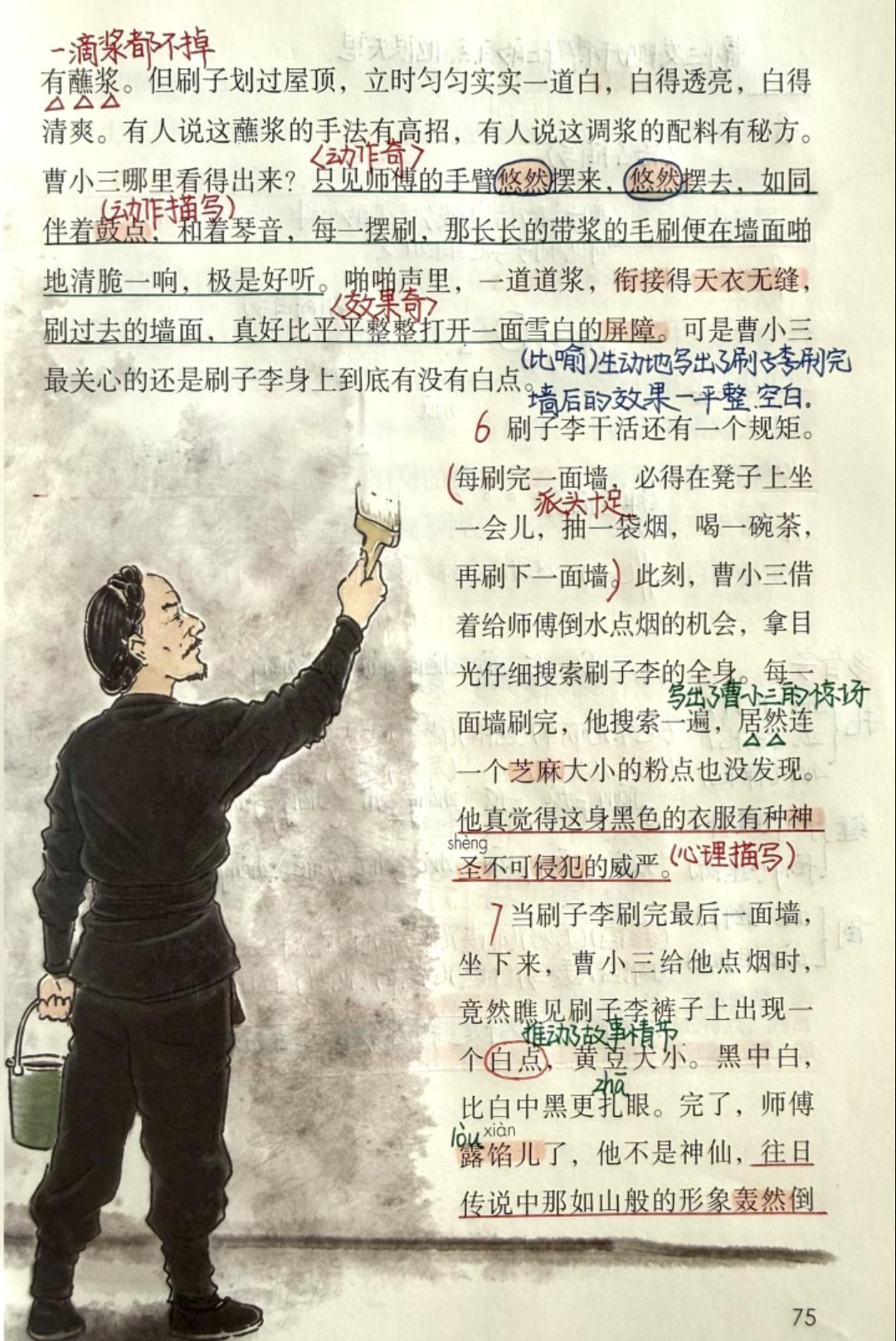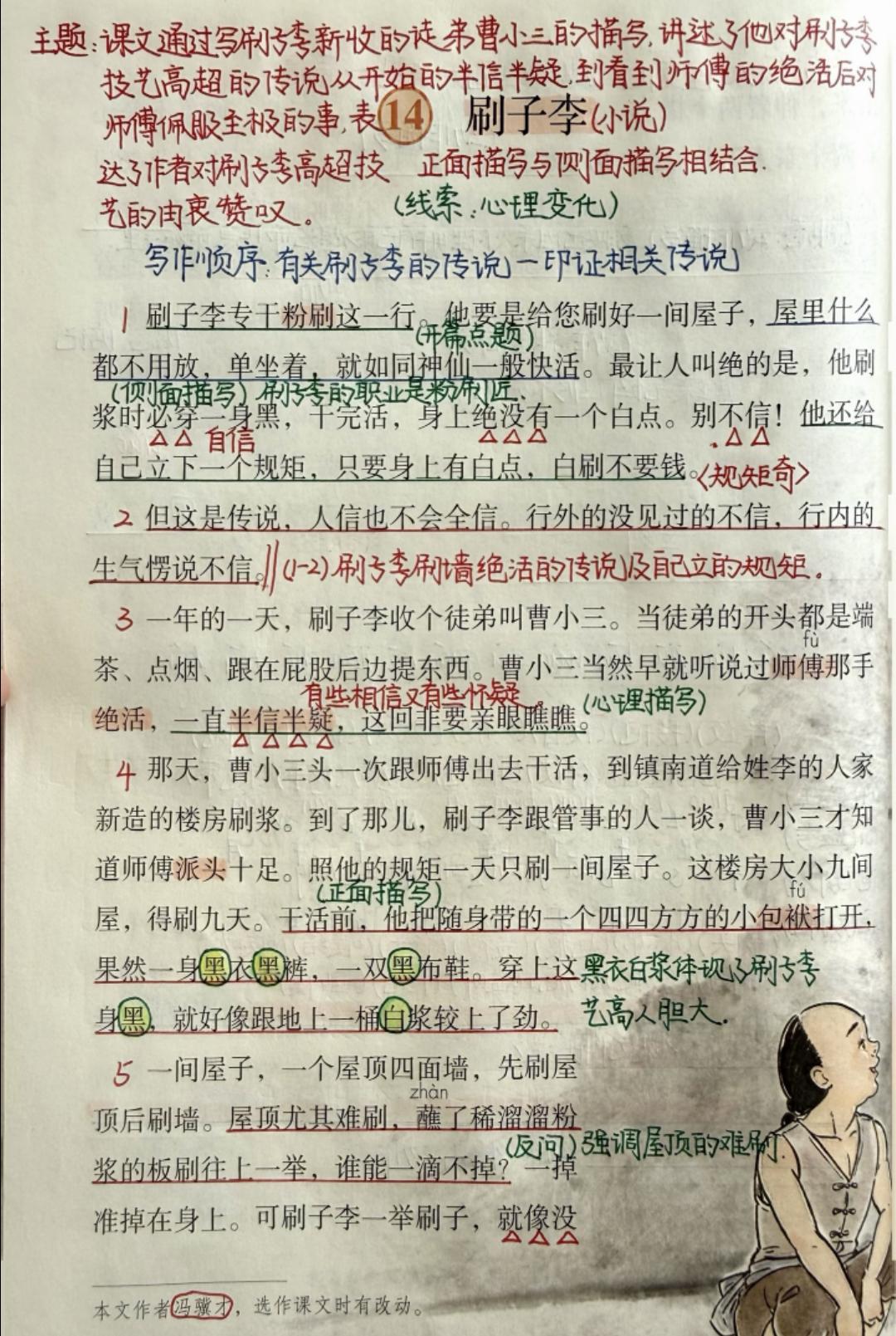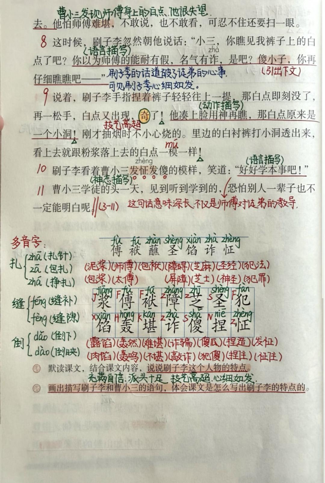 五年级下册语文,第五单元《人物描写一组》《刷子李》《习作例文》课堂笔记,收藏复习~