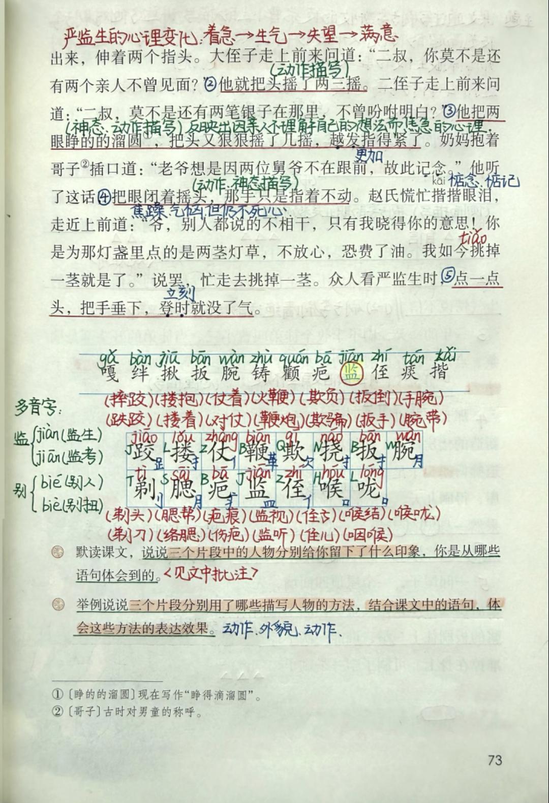 五年级下册语文,第五单元《人物描写一组》《刷子李》《习作例文》课堂笔记,收藏复习