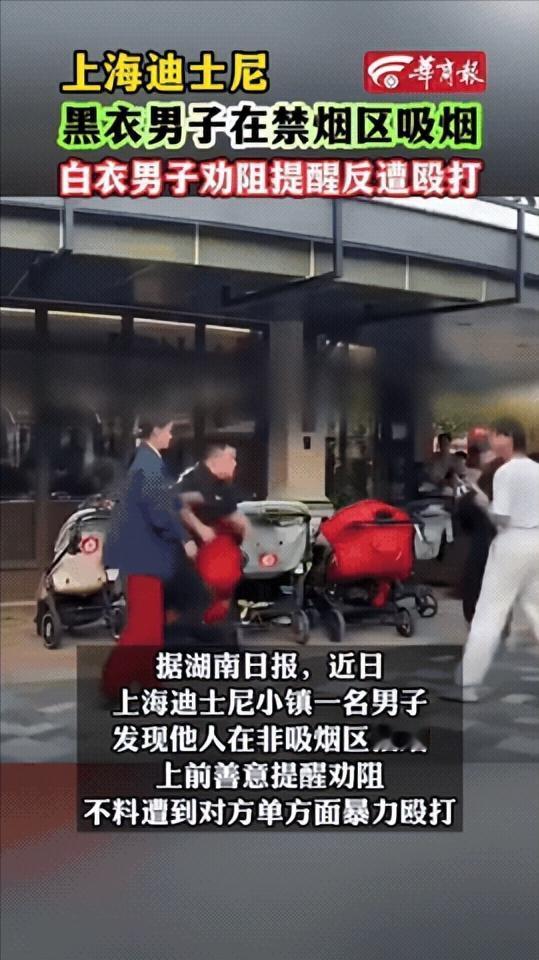 上海迪士尼小镇,一白衣男子好心劝阻另一黑衣男子吸烟,不料竟惹恼了对方,竟遭对方持续追踹、拳打脚踢,黑衣男子情绪激动,现场场面混乱! 说到上海迪士尼,大家第一印象都是浪漫,治愈,是成年人和孩子的童话乐园,傍晚夕阳洒在城堡尖顶,空气里飘着爆米花和甜品的香甜,本该是温柔又美好的氛围。 可就在近日,上海迪士尼小镇却发生了一件让人无比心寒的事,彻底打碎了童话滤镜,让无数网友直呼离谱。 事发傍晚,迪士尼小镇游客众多,大部分都是带着孩子,老人排队游玩的家庭,人群密集的排队区域里,一名黑衣男子当众点燃香烟,烟雾四处飘散,直接飘向周边的老人和小孩,十分影响他人。 就在这时,一名24岁的白衣小伙子看不下去,主动上前善意劝阻,他态度温和,只是简单提醒对方,“哥们儿,把烟掐了吧,人太多了。” 谁也没想到,这句好心的劝阻,竟直接惹怒了抽烟的黑衣男子,这名34岁的许姓男子当场情绪失控,完全不顾周围密密麻麻的游客,抬脚就朝着白衣小伙狠狠踹了过去,这一脚力道极大,白衣小伙的眼镜瞬间被踢飞,整个人重心不稳连连向后踉跄。 可许某依旧没有收手,彻底失控暴怒,紧接着对着毫无防备的小伙拳脚相加,拳头一下接一下砸向对方,开启持续追打模式,全程白衣小伙始终保持克制,没有还手一次,只能不断后退躲闪狼狈躲避雨点般的拳脚。 现场场面瞬间彻底混乱,周围排队的游客被突如其来的冲突吓坏,不少人慌忙后退避让,还有游客慌乱举起手机记录现场,也有人不忍直视转头避开。 迪士尼现场工作人员第一时间冲上前阻拦劝解,但暴怒的许某情绪极其激动,完全不听劝阻依旧持续施暴,工作人员根本拦不住,周边游客没人敢上前制止,场面一度十分紧张。 好好的乐园氛围,被一场无端暴力彻底破坏,直到夕阳落山,天色渐暗,浦东公安分局民警接到报警火速赶到现场,才彻底制止了这场闹剧,将涉事男子带回派出所调查。 事后大家得知冲突起因,都觉得荒唐又无奈,整场纠纷没有任何深仇大恨,仅仅是一次善意的公共场合劝阻,在许某的认知里,自己比对方年长,被年纪更小的小伙当众提醒,让自己丢了面子,于是恼羞成怒,把他人的善意提醒当成了当众羞辱,借着怒火肆意动手伤人。 更让人唏嘘的是,事发区域属于园区规则的灰色地带,迪士尼小镇规定,仅指定区域可吸烟,事发的人群聚集区域不算严格禁烟区,抽烟仅违反园区规定,并不触犯法律,也正因如此,很多人质疑白衣小伙多管闲事,但大家要清楚,人群密集遍布老人小孩的公共区域,抽烟本身就十分影响他人,小伙的劝阻是纯粹的道德善意。 反观施暴者,在众目睽睽之下肆意殴打他人,把所谓的面子看得比公德法理更重,他肆意发泄情绪,用暴力回应善意,上演了一场荒唐又恶劣的闹剧,而全程围观的游客大多选择沉默避让,无人上前帮忙,也让这场冲突多了几分无奈。 被打的白衣小伙全程隐忍不还手,其实格外清醒,一方面是敬畏法律,一旦还手就会变成互殴,好心劝阻反而会让自己惹上麻烦,另一方面,看着周围全是游玩的老人和小孩,他不想让暴力冲突影响到所有人,破坏大家的游玩体验。 闹剧落幕暴怒过后的许某到了派出所才彻底冷静,幡然醒悟心生后怕,最终,为自己的冲动暴力付出了代价,主动向白衣小伙道歉,并且赔付了数万元赔偿金,双方达成和解。 一场十岁年龄差的口角劝阻,最终换来数万元的赔偿,这笔荒诞的账单,也让无数网友感慨万千,仅仅是放不下所谓的面子,一时情绪失控动手伤人,不仅破财,还留下不良记录,得不偿失。 这件事最让人寒心的从来不是一场冲突,而是当下无奈的现状,善意劝阻随时可能遭遇暴力,见义勇为的成本越来越高,公共场合的公德心,不该被无端的暴力碾压,希望所有人都能谨记,公共空间需要互相体谅,面子从来不是靠拳头挣来的,克制与善良才是成年人最好的体面。