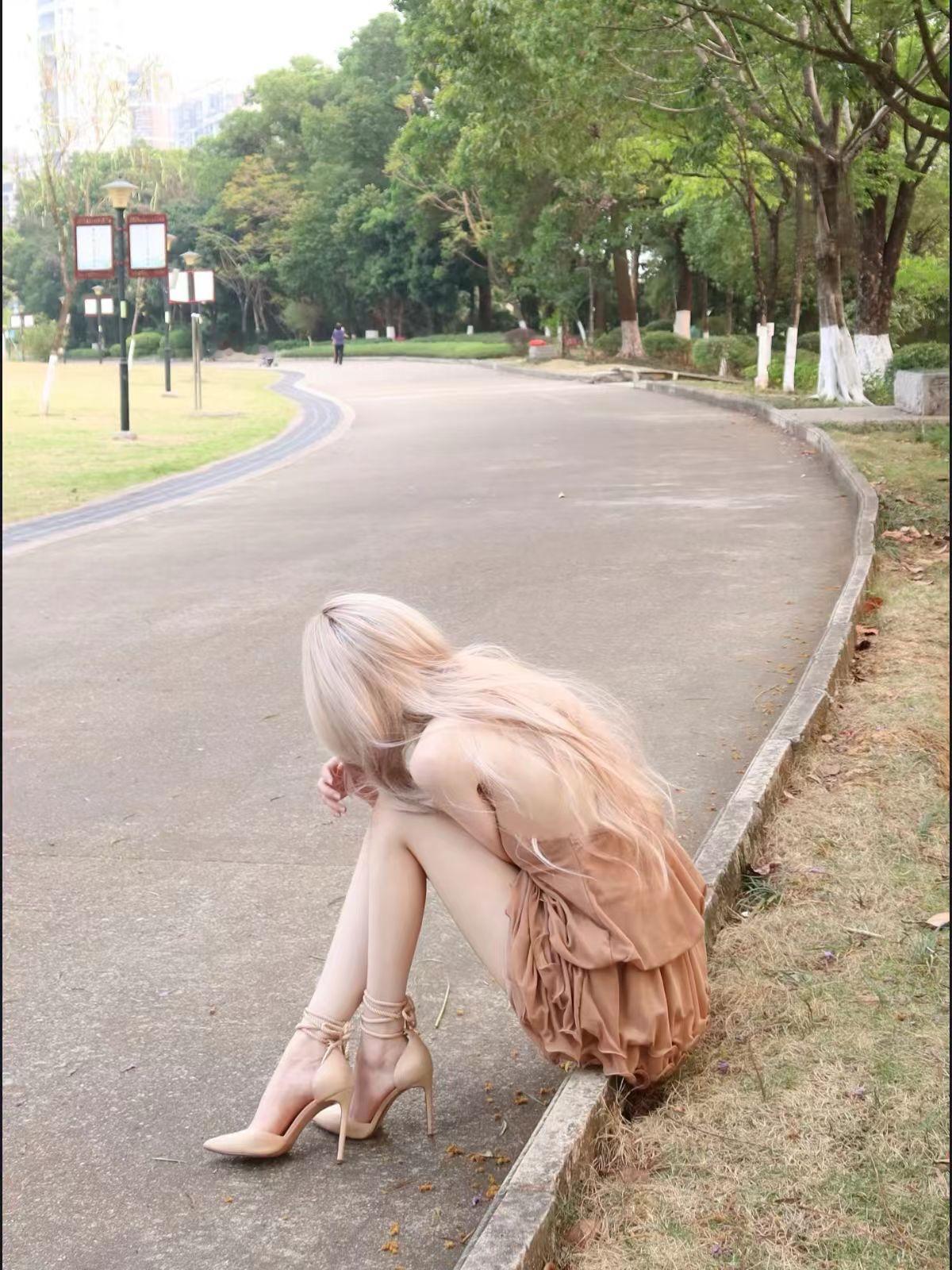 秋日公园漫步,轻纱裙摆随风飘逸。