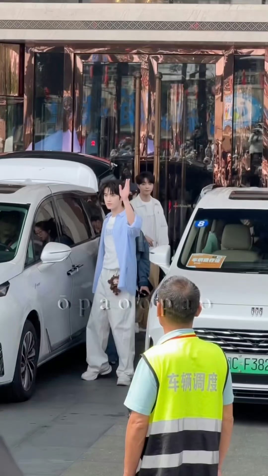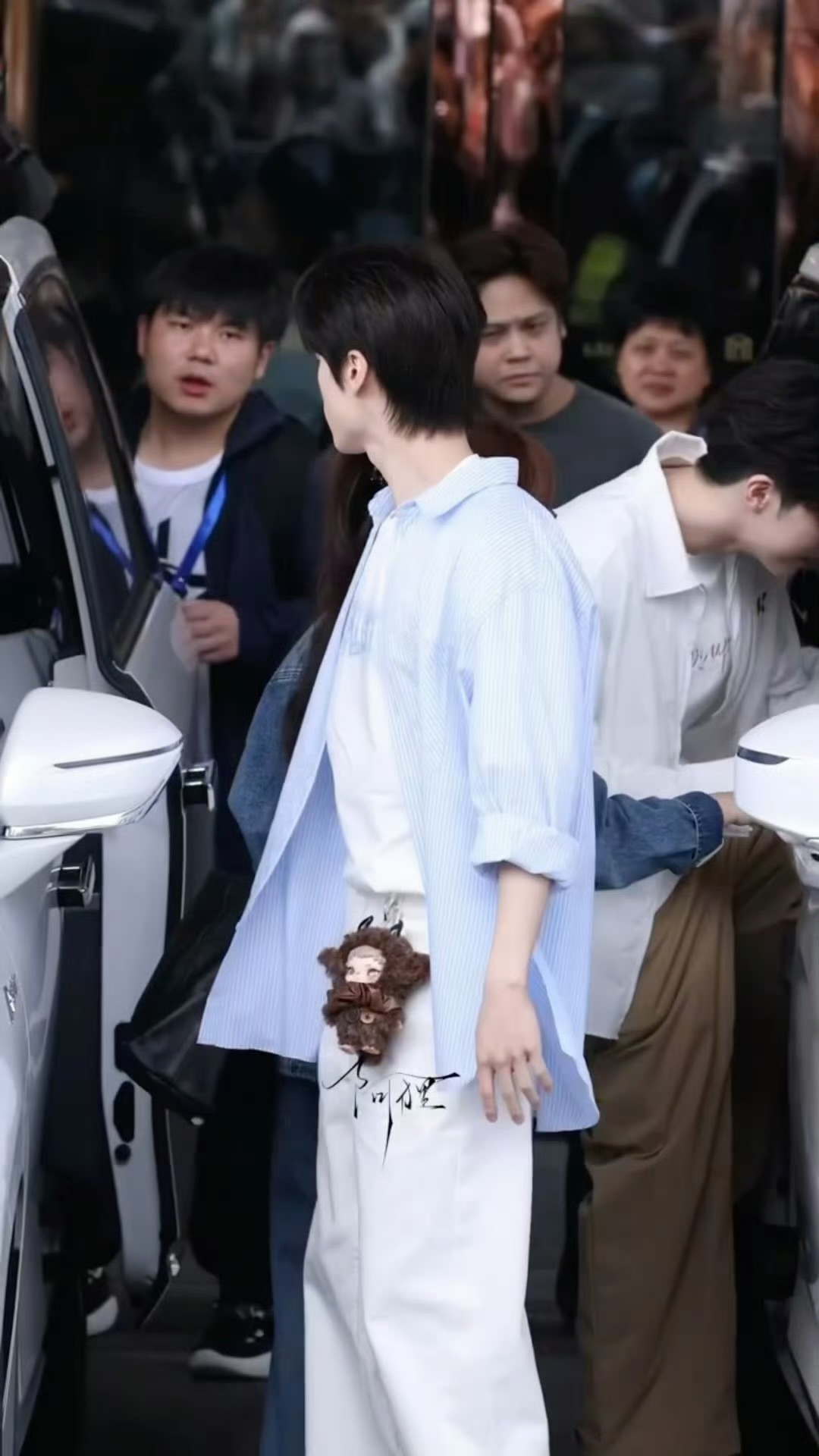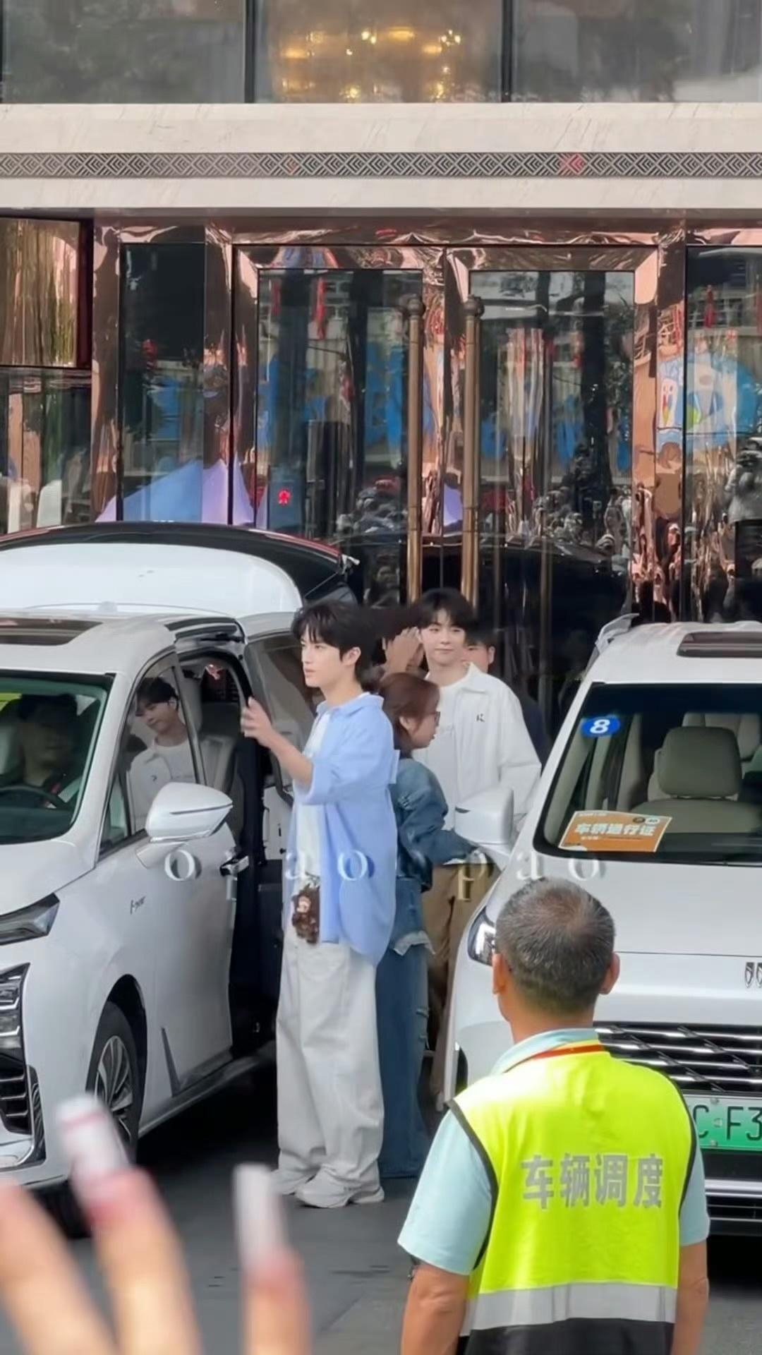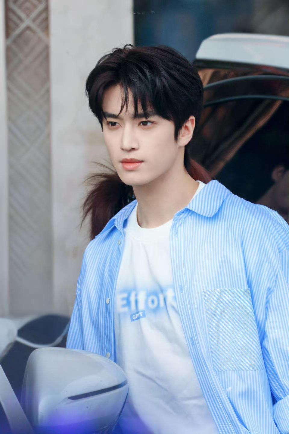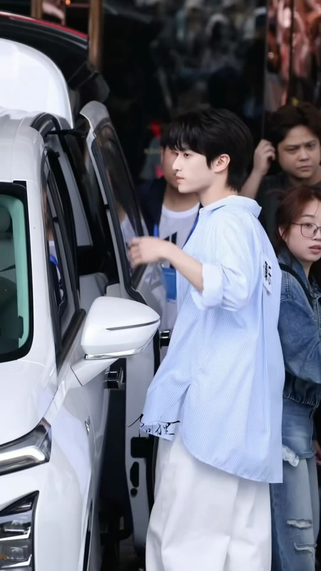 张康乐就这样一路萌萌的打招呼上车👋张康乐蓝色衬衫look