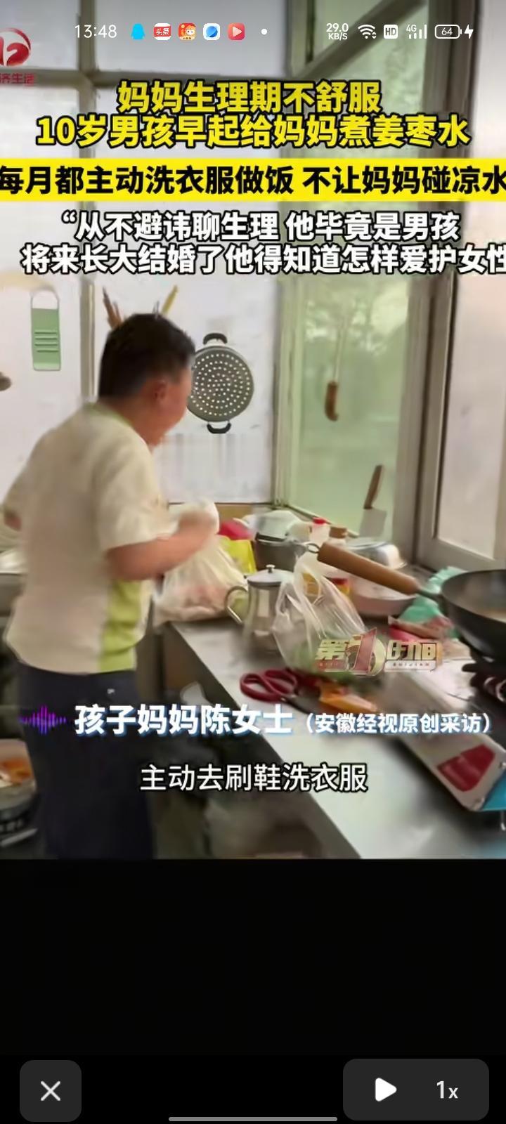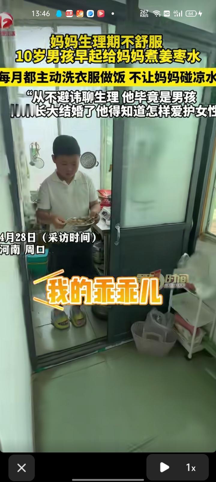 4月27日,河南周口。妈妈生理期不舒服,十岁儿子早起给妈妈做红糖姜枣水,每个月都主动洗衣做饭,不让妈妈碰凉水,这让妈妈感动在心里。对此,孩子妈妈陈女士表示,自己从不避讳聊生理,他毕竟是男孩,将来长大结婚了他得知道怎么爱护女性