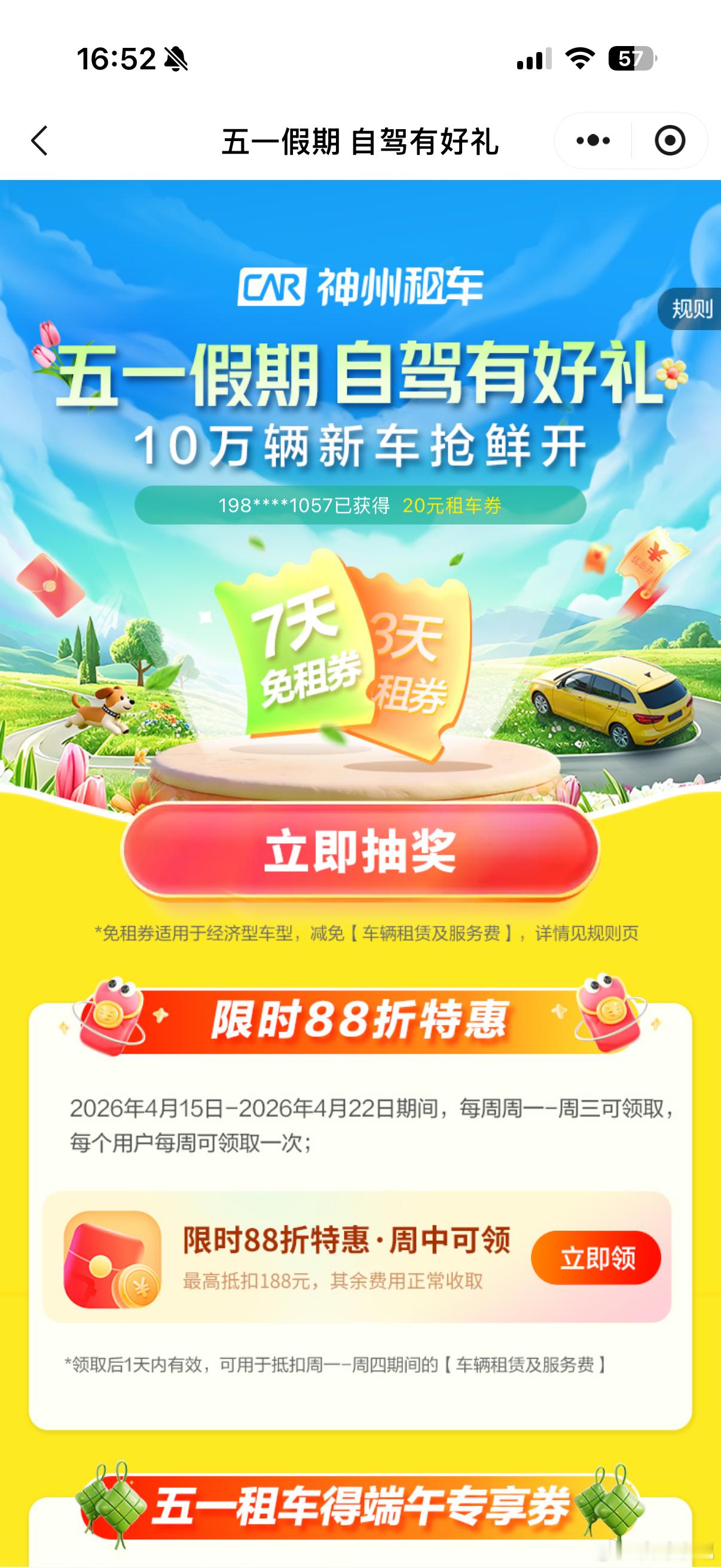建议想减肥的人去一趟云南神州租车伴你畅游七彩云南,五一自驾游开启健康新模式!云南清新环境适合休闲减脂,自由自驾旅途更加舒心。10万辆新车抢鲜开,上门取送超省心,优质神州租车品质服务保驾护航,假期专属福利来袭,抽7天免租券,五一租车赠送端午专享券。