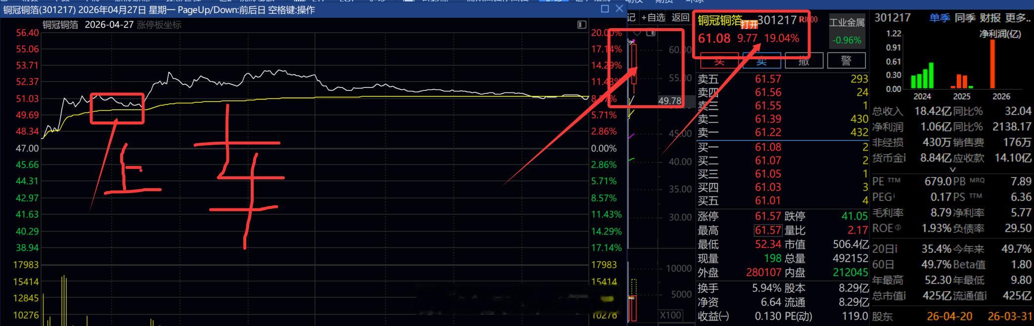 AI硅光芯片第一股上市狂涨380%A股新股王一季报公布昨天低位上车的铜冠铜箔今天大肉,V+老铁爽了吧,老铁们来一波518,我要发