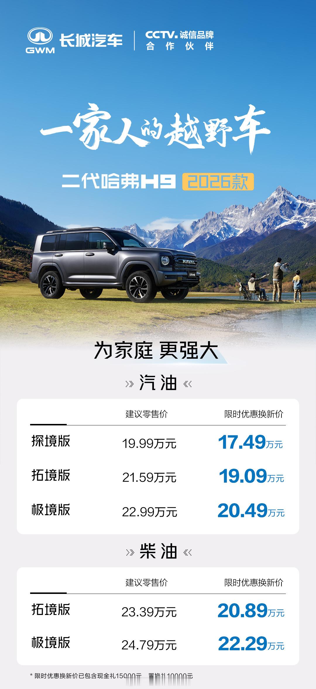 一家人的越野车2026款二代哈弗H9为家庭更强大