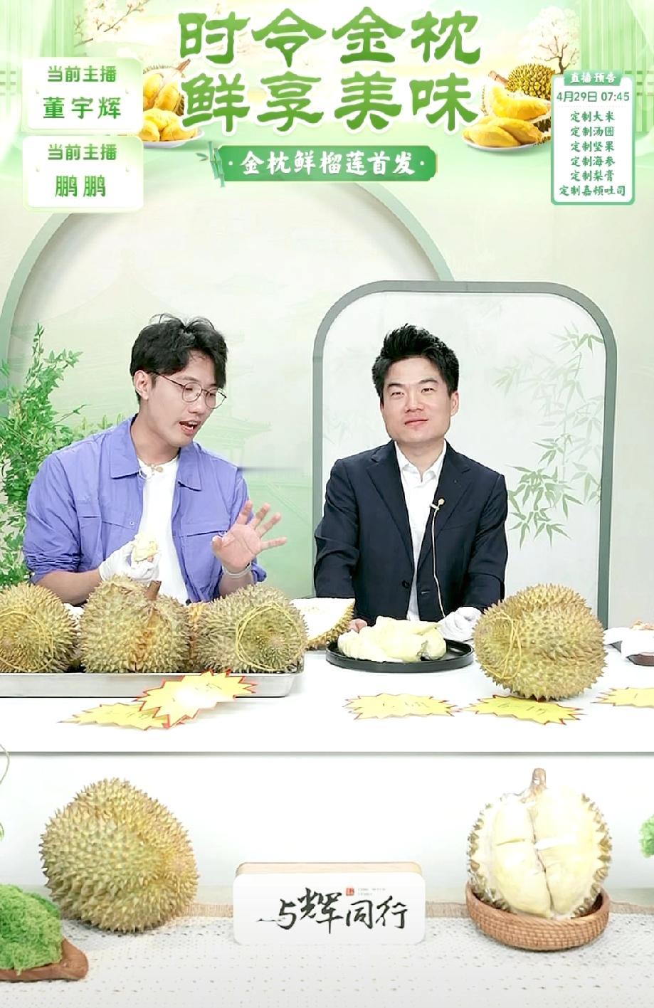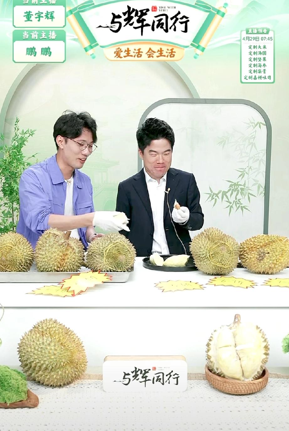 与辉同行金枕鲜榴莲首发,没想到董宇辉也来直播间了。这下喜欢吃榴莲的朋友们有口福了,真的真的是物美价廉! 董宇辉和鹏鹏一起直播,鹏鹏负责开榴莲。董宇辉说:“过好当下,当下最幸福的事就是吃榴莲。”董宇辉太可爱了,还给自己找了一个冠冕堂皇的理由,还拿两个没太熟的的说员工自己解决,无害化处理,这是要带回家的节奏呀。 鹏鹏在低头剥榴莲的瞬间,抬头发现董宇辉一块都吃完了。董宇辉一边吃一边还不忘调侃自己,夸自己的速度快。有朋友说:“ 宇辉呀,别光顾着吃啦,咱在翠花的事情上也上上心吧。” 看来董宇辉今天不会去西安兰知春序直播了,他不去一切也都能照常进行,因为他已经把他手下的兵都带的个个都能独当一面了。 董宇辉 与辉同行