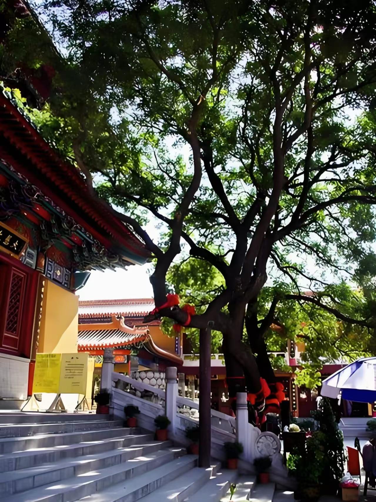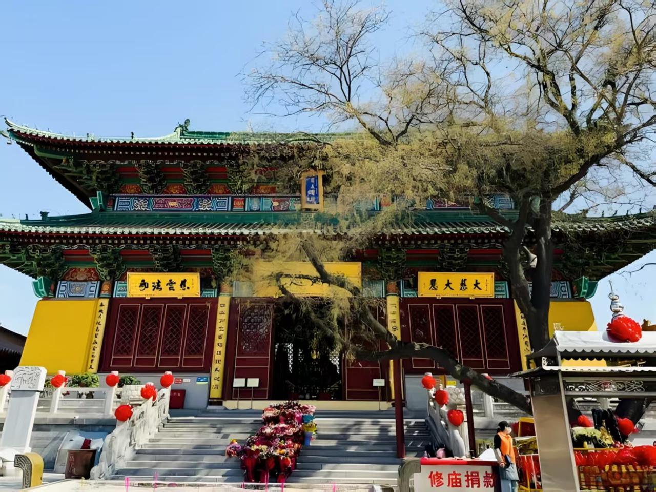 先有大直沽后有天津卫,今儿在荐福观音寺算把这老话的分量摸透了,红墙灰瓦里藏着的可不只是香火,还有一肚子的传奇,红墙映着蓝天,香火里飘着点岁月的味道。 迈进山门,就像闯进了时光的褶皱,前殿的哼哈二将威风凛凛,阳光透过窗棂在青砖地上投下斑驳的影,连风都好像慢了半拍。 再说说那尊观音像,老人讲,早年间大直沽遭水患,百姓苦不堪言,某天夜里,有人看见河面漂来一尊木雕观音,到了寺前就稳稳停下,水患竟也跟着退去,后来人们把它请进寺里,每逢干旱,只要诚心祈雨,准会降下甘霖。 还有后院那棵老槐树更神,在这儿已经站了好几百年,枝桠弯弯绕绕,像在跟每个来的人讲古说经,枝桠上系满了红绸,传说曾有迷路的孩童在树下睡着,醒来发现身上盖着不知哪来的落叶,循着树影就找到了家,如今摸摸它的树干,还能感觉到一点温润,像老者的手掌。 寺里的师傅说,这些故事口口相传了几百年,真假不重要,重要的是那份护佑的心意。站在殿前看香灰簌簌落下,忽然觉得这方天地里,藏着的不只是岁月,还有沉甸甸的念想。