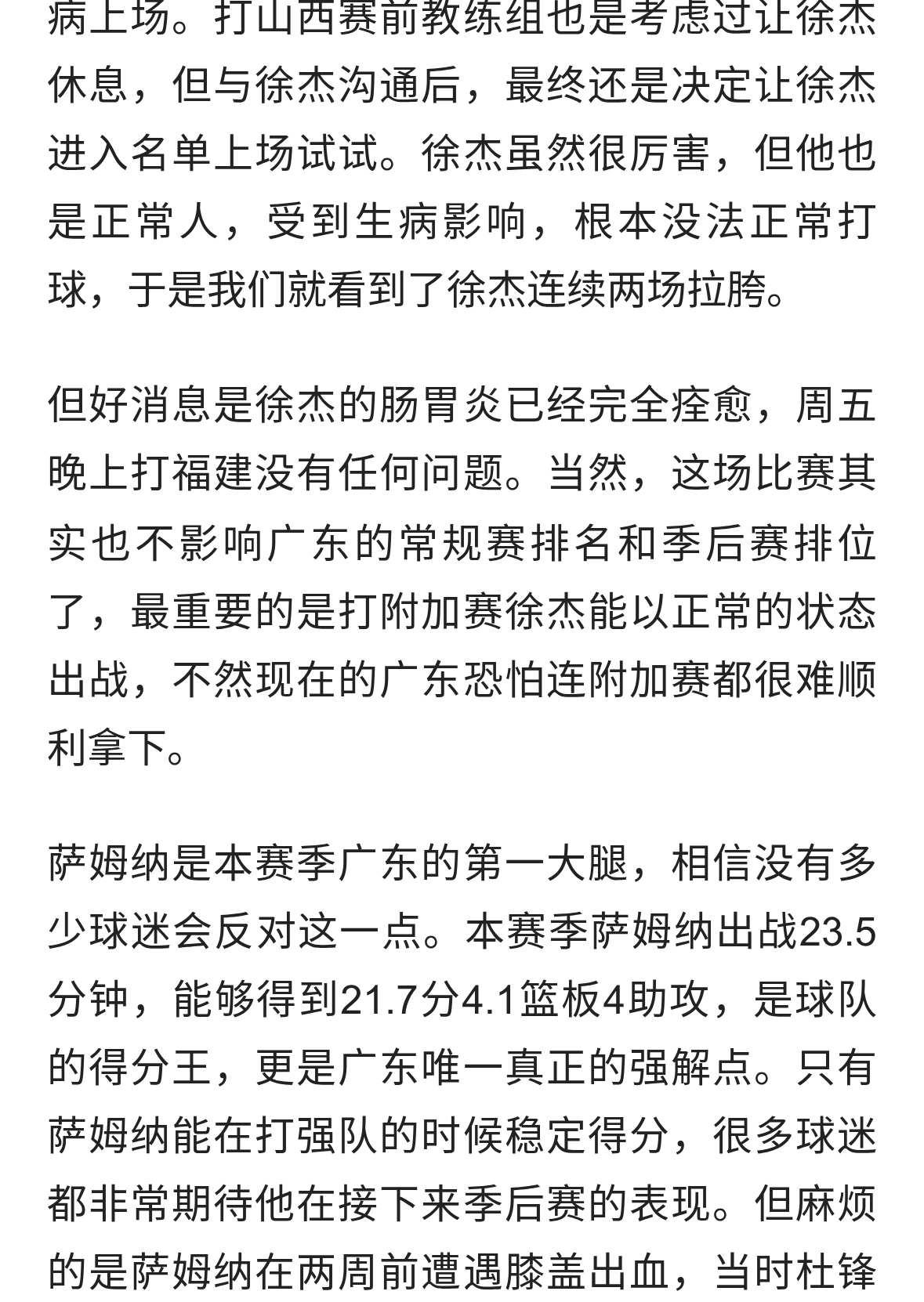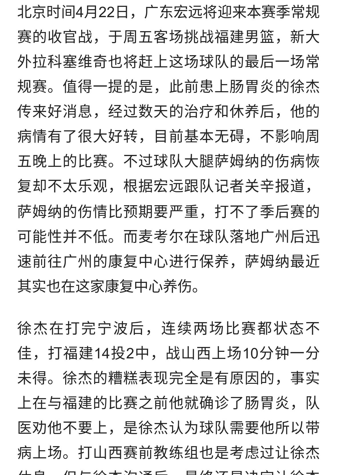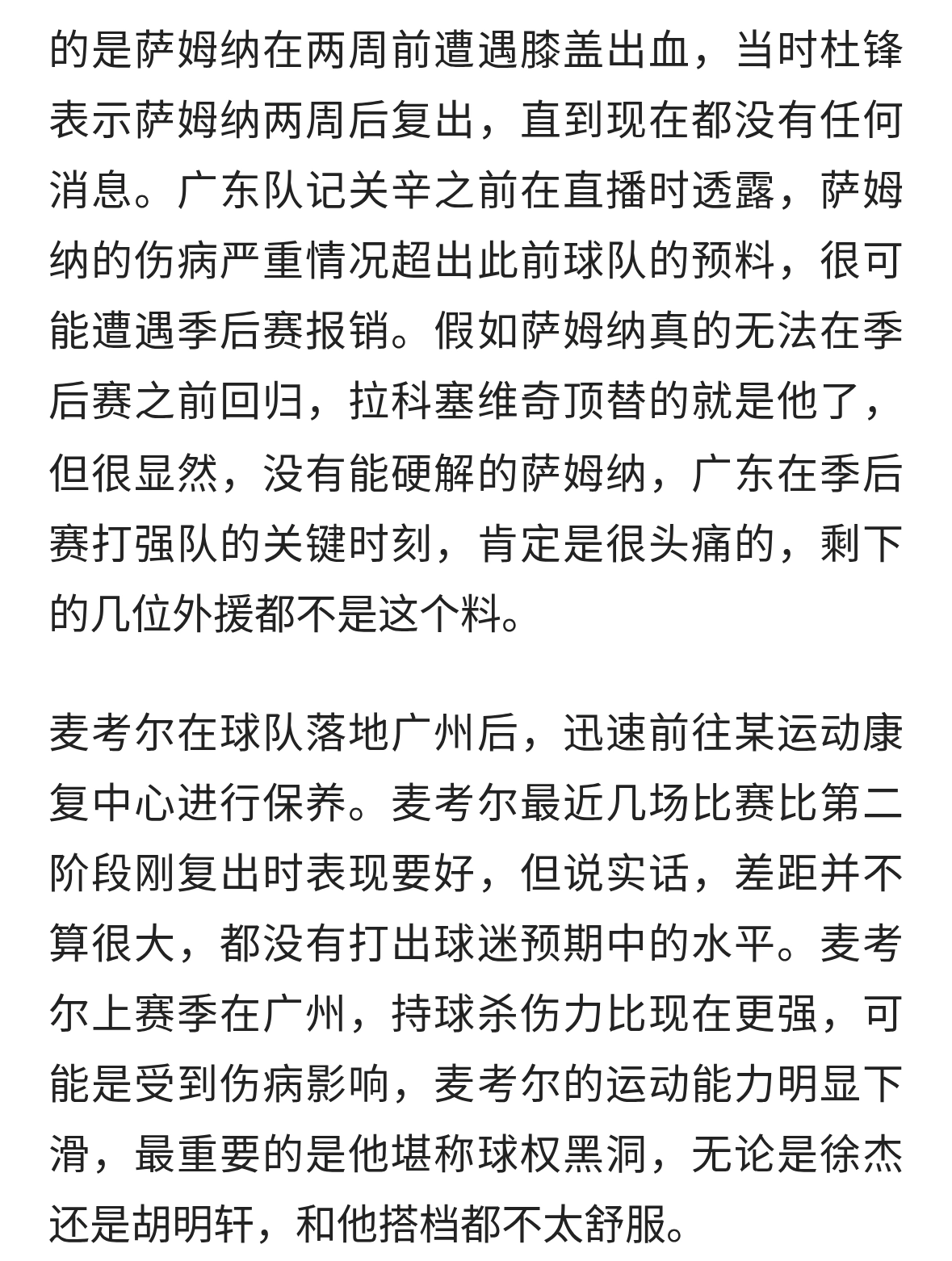 广东宏今日早报!徐杰最新伤情,萨姆纳无缘季后赛,麦考尔做保养