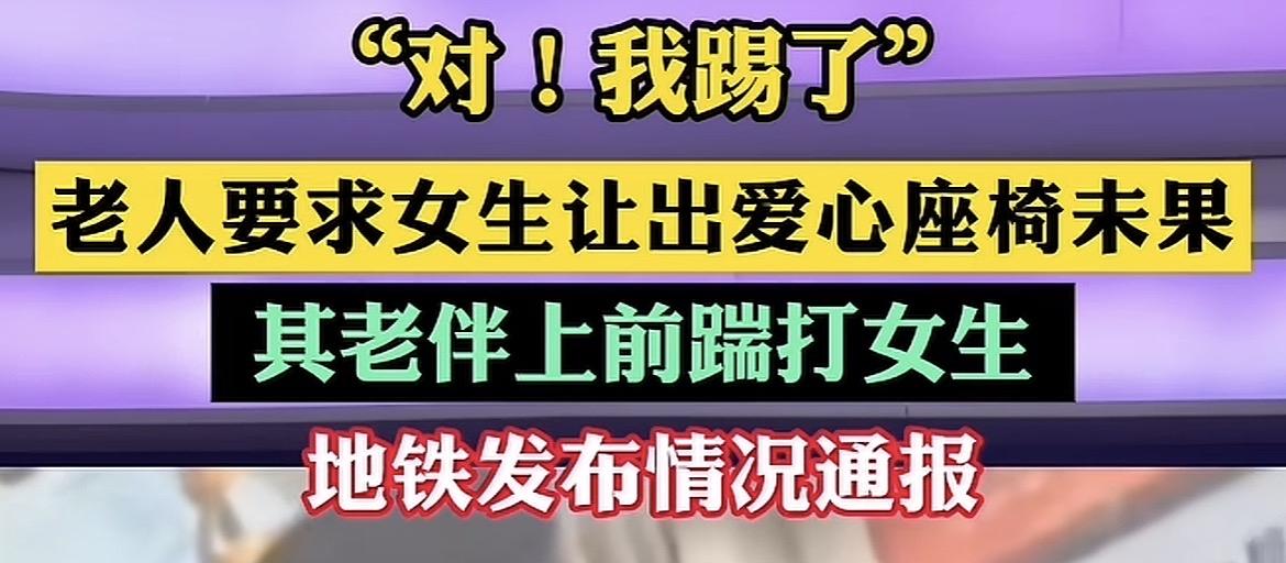 一天天的因为让座打架… 最近好几起了,因为地铁爱心座产生矛盾,沈阳那边也发生了一起,老人上前踹打女生… 说他们老了吧,动辄就对他人,特别是针对年轻女性使用暴力,说不老吧,又非想坐。 假如对方是个高壮的年轻男子,还敢打人么? 女孩子有生理期,保不齐那天确实难受,爱心座从来不是只给老人的,特别是还能动粗的老人! 年轻人也是,要是真的身体没什么不舒服,看见老人,能让就让一下吧,家里都有老人,体谅一下。 要我说,干脆取消所有座位得了,一天天的各种矛盾全是因为座位引起的。 公交车让座争议 地铁座位争端 地铁爱心让座 早高峰让座争议 地铁上的争吵 让座困局 让座道德困局 地铁