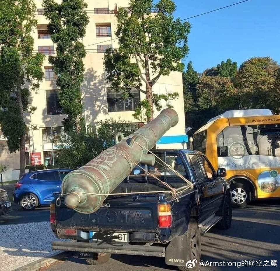 丰田皮卡炮,大概率是个玻璃纤维制成的道具。要是真家伙,一门如此巨大的实心青铜炮重