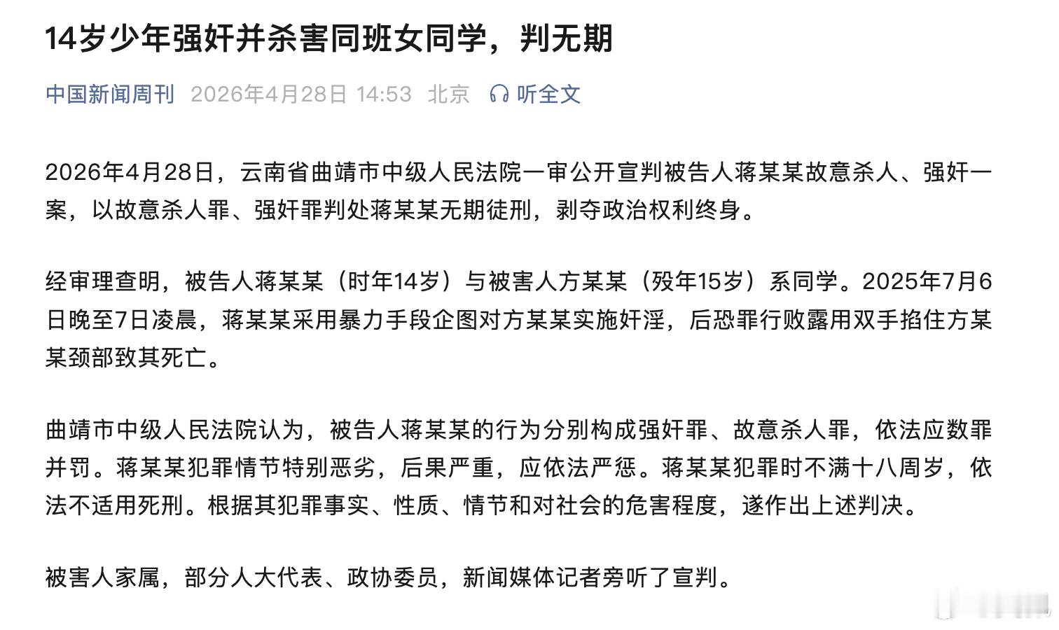是不是快“五一”放假,人员集中了,今天都放出两条这样的警示信息了出门在外,遵纪守法,谨记幸福者避让原则14岁少年杀害同班女同学被判无期强奸出狱后又杀人男子被执行死刑田永明被执行死刑强奸又刺死见义勇为者凶手死刑